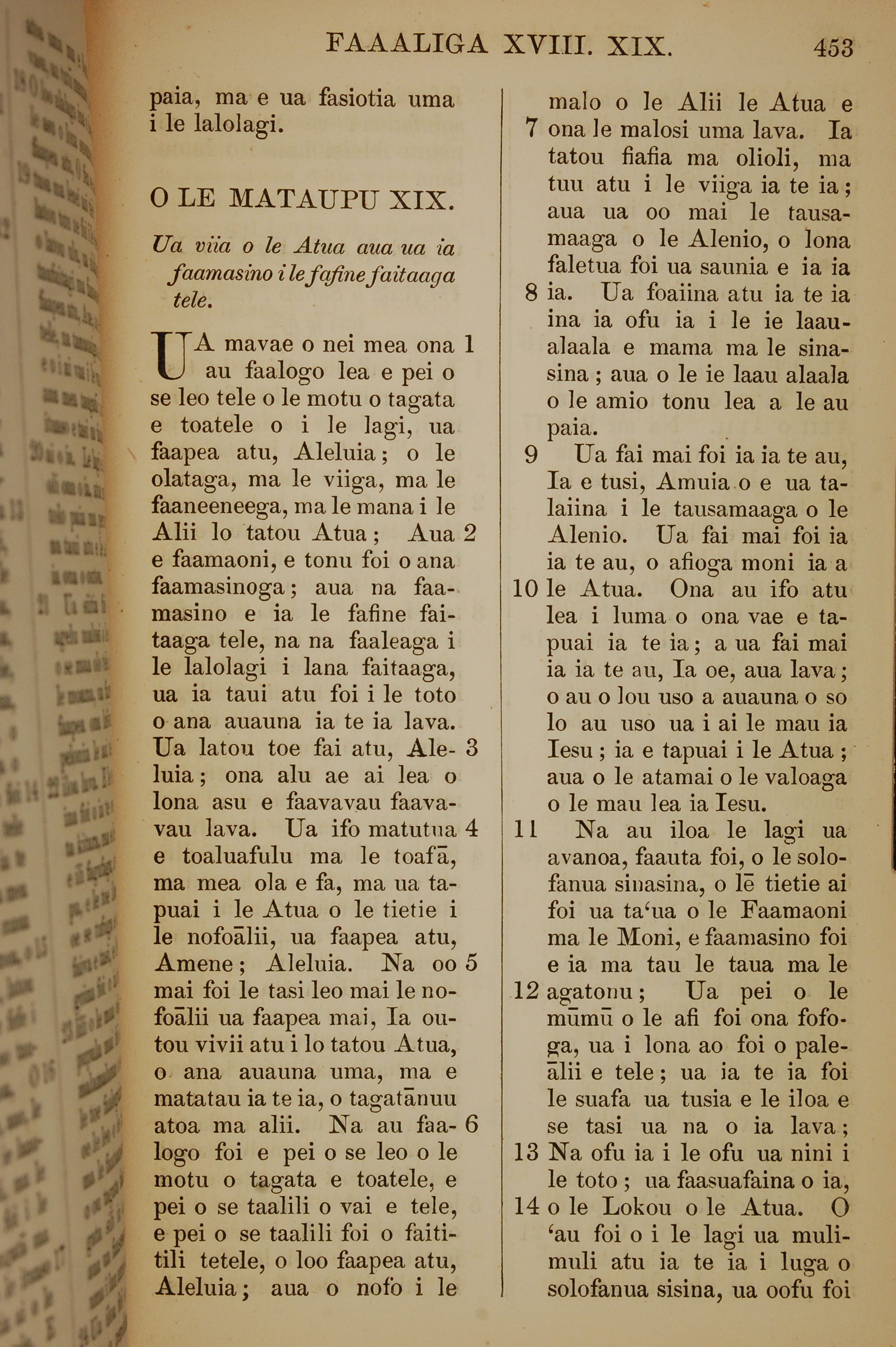 1849年薩摩亞語新約全書 啟示錄 19 章 1 節到 19 章 14 節
