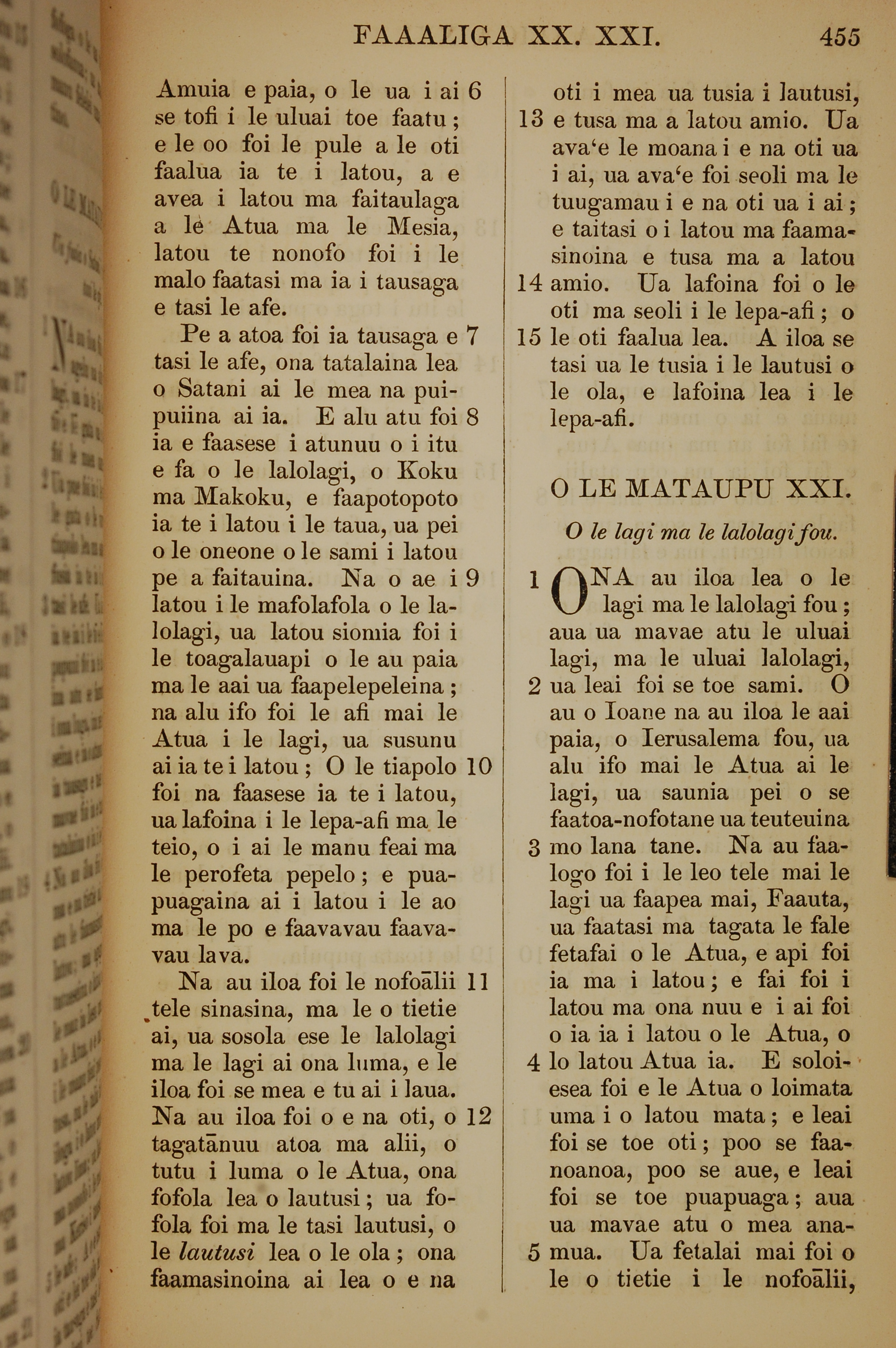 1849年薩摩亞語新約全書 啟示錄 20 章 6 節到 21 章 5 節