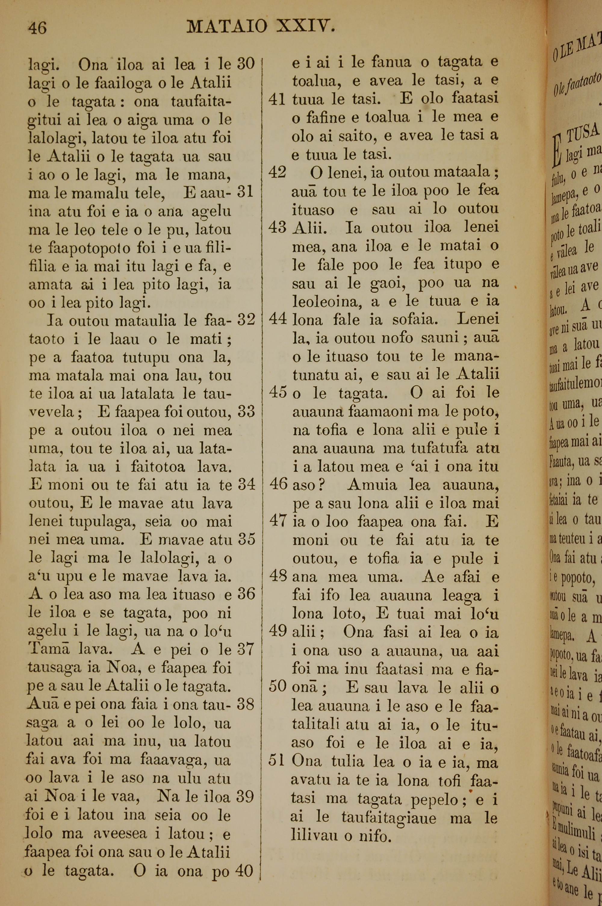 1849年薩摩亞語新約全書 馬太福音 24 章 30 節到 24 章 51 節