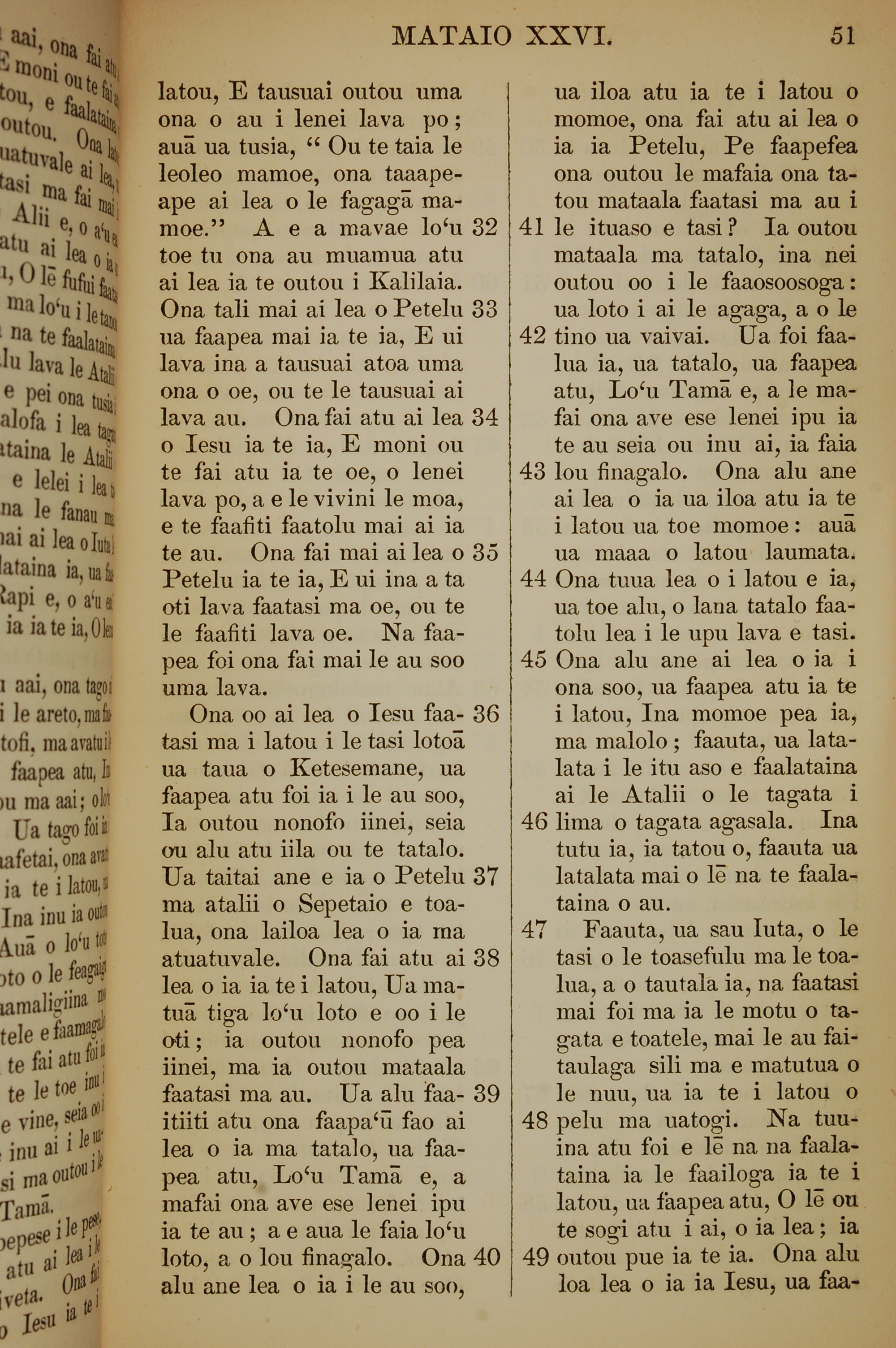 1849年薩摩亞語新約全書 馬太福音 26 章 32 節到 26 章 49 節