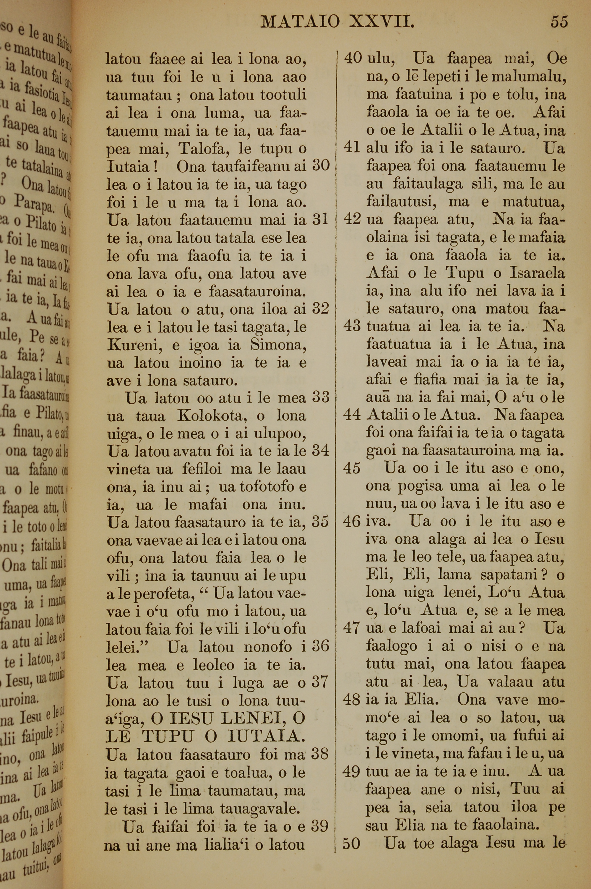 1849年薩摩亞語新約全書 馬太福音 27 章 30 節到 27 章 50 節