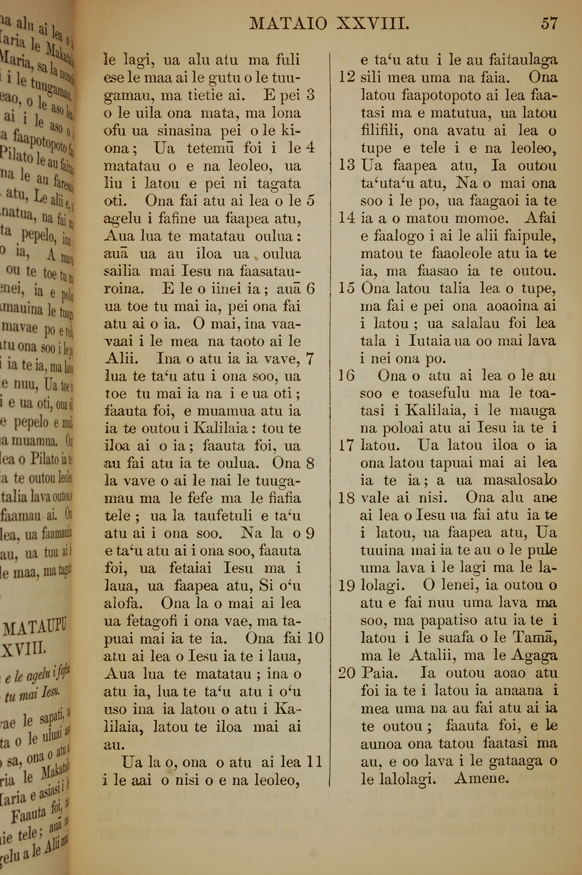 1849年薩摩亞語新約全書 馬太福音 28 章 3 節到 28 章 20 節