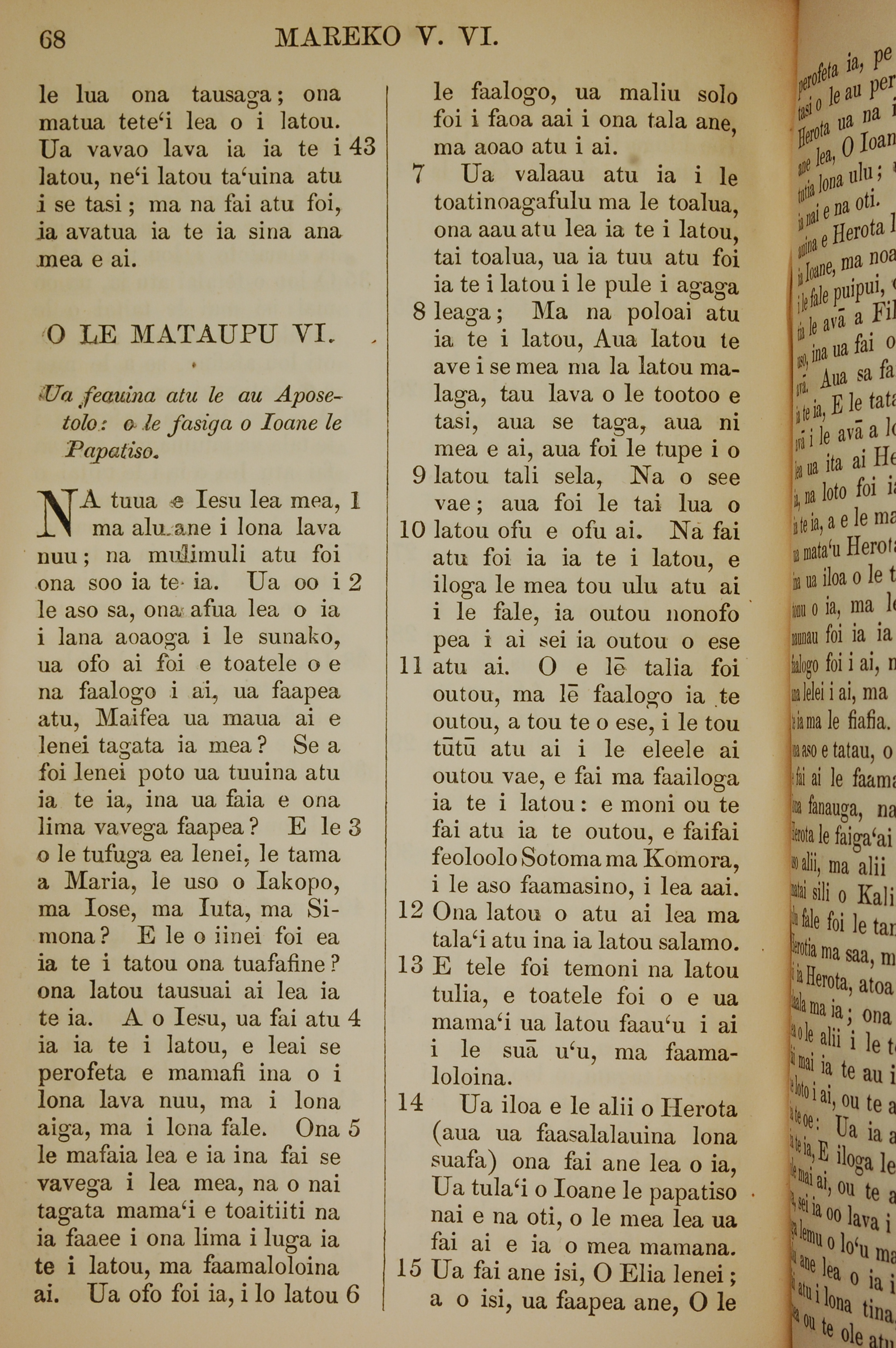 1849年薩摩亞語新約全書 馬可福音 5 章 43 節到 6 章 15 節