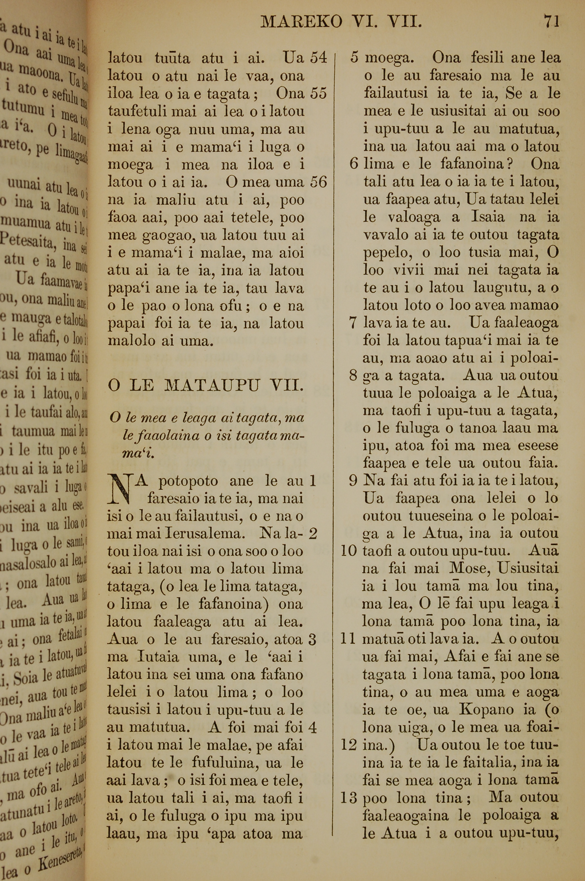 1849年薩摩亞語新約全書 馬可福音 6 章 54 節到 7 章 13 節
