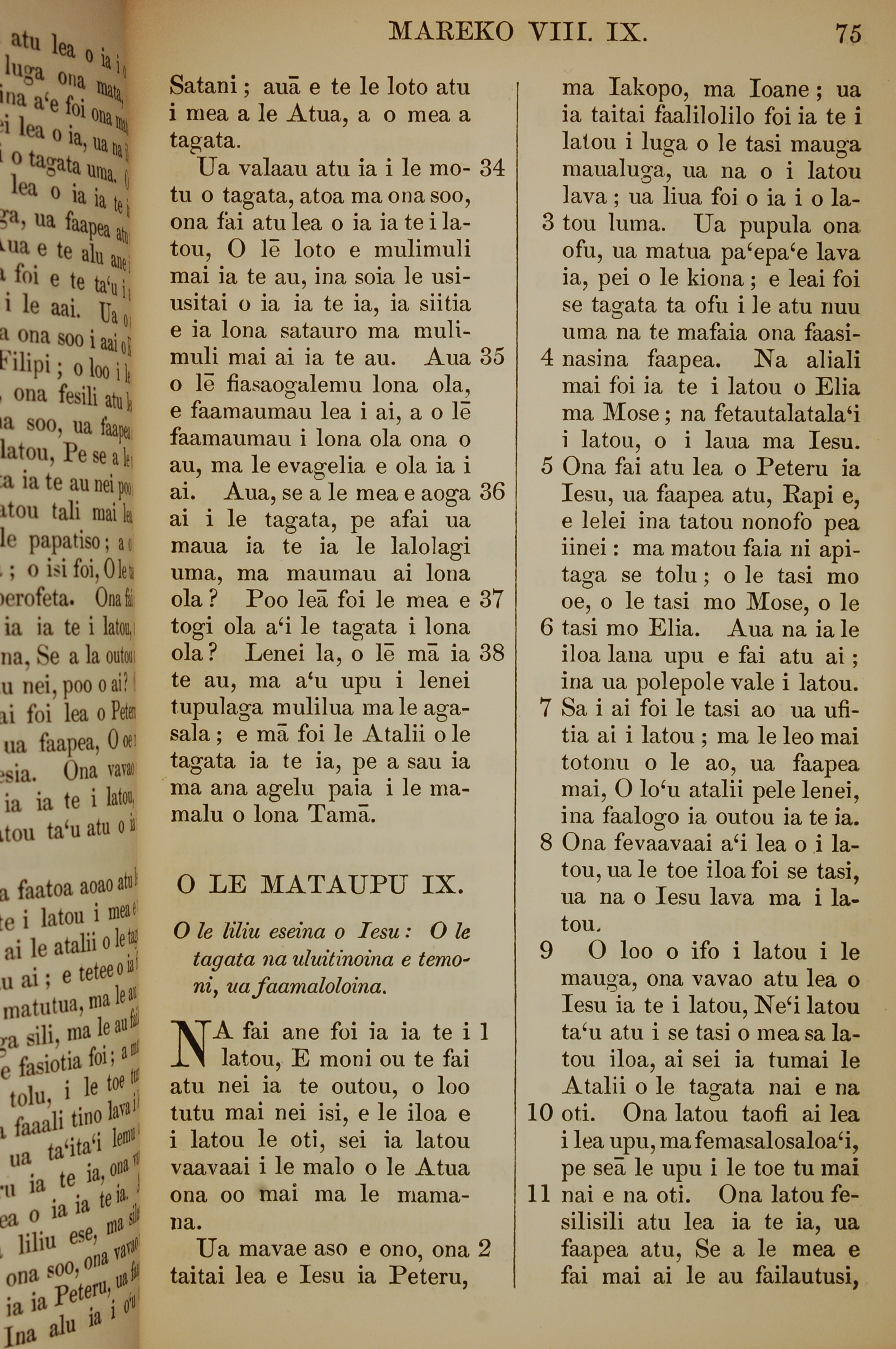 1849年薩摩亞語新約全書 馬可福音 8 章 34 節到 9 章 11 節