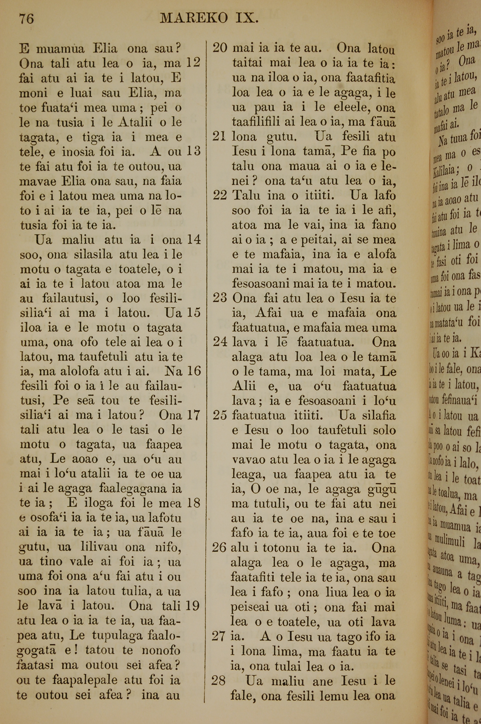 1849年薩摩亞語新約全書 馬可福音 9 章 12 節到 9 章 28 節