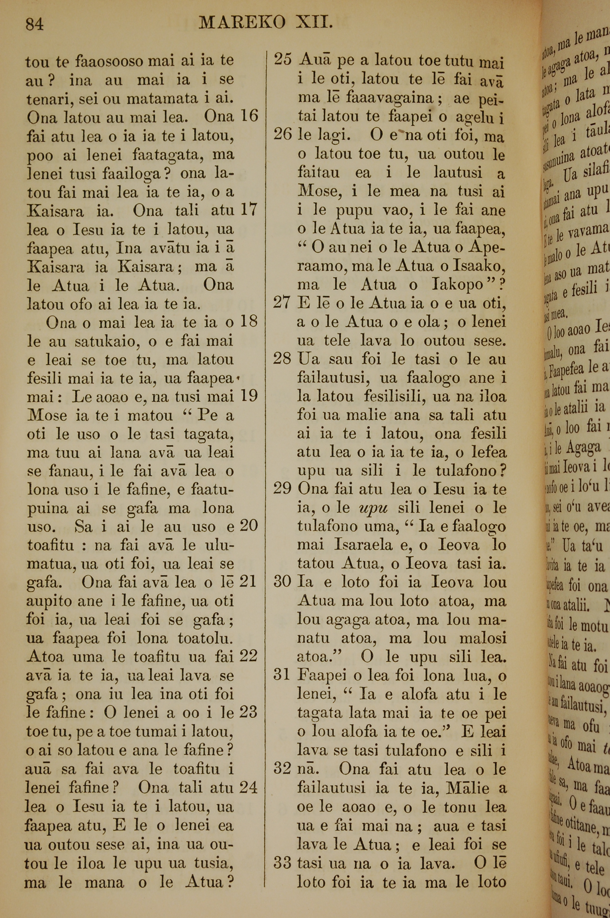 1849年薩摩亞語新約全書 馬可福音 12 章 16 節到 12 章 33 節