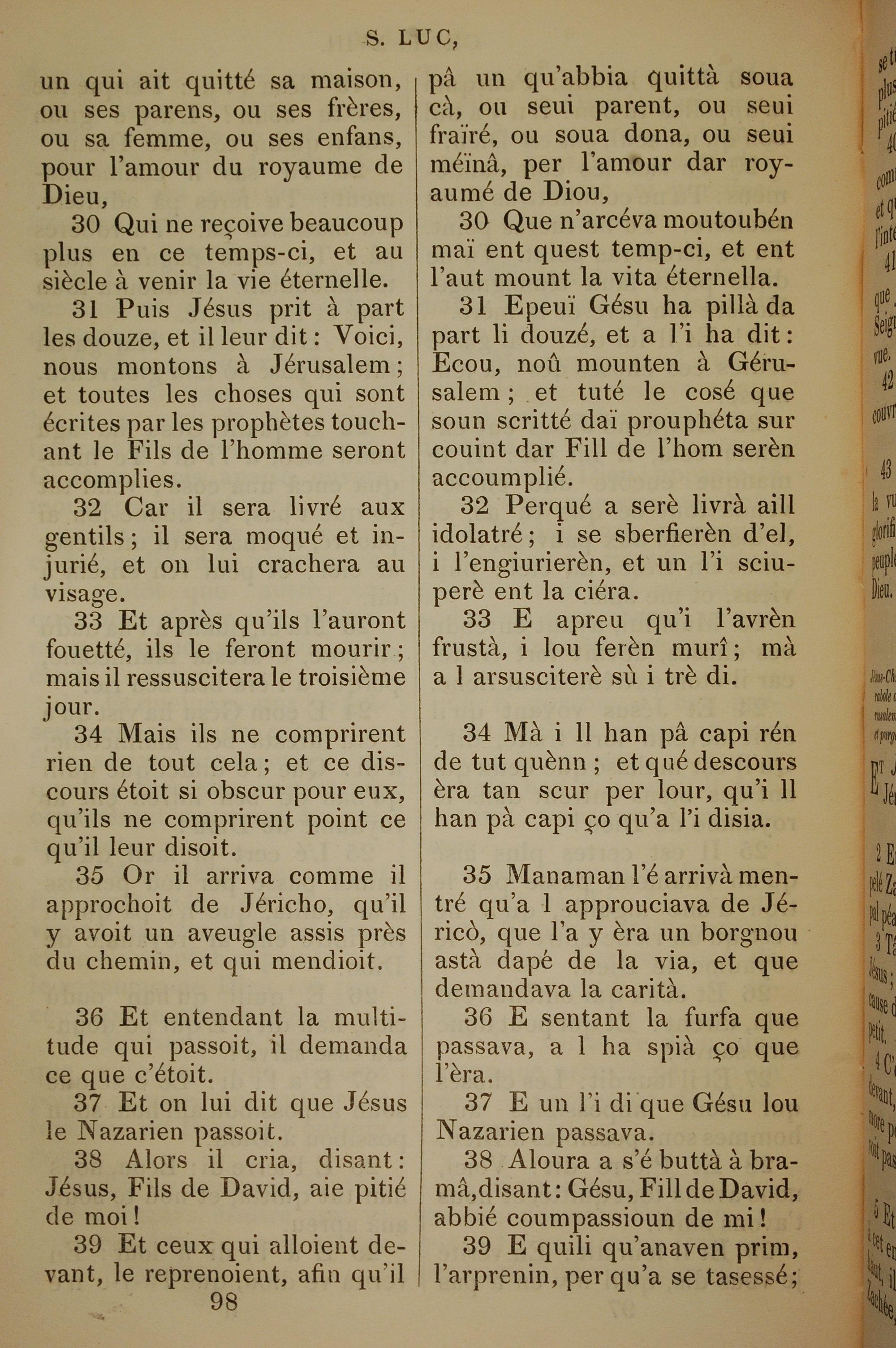 1832年法文聖經路加福音及約翰福音 路加福音 18 章 30 節到 18 章 39 節