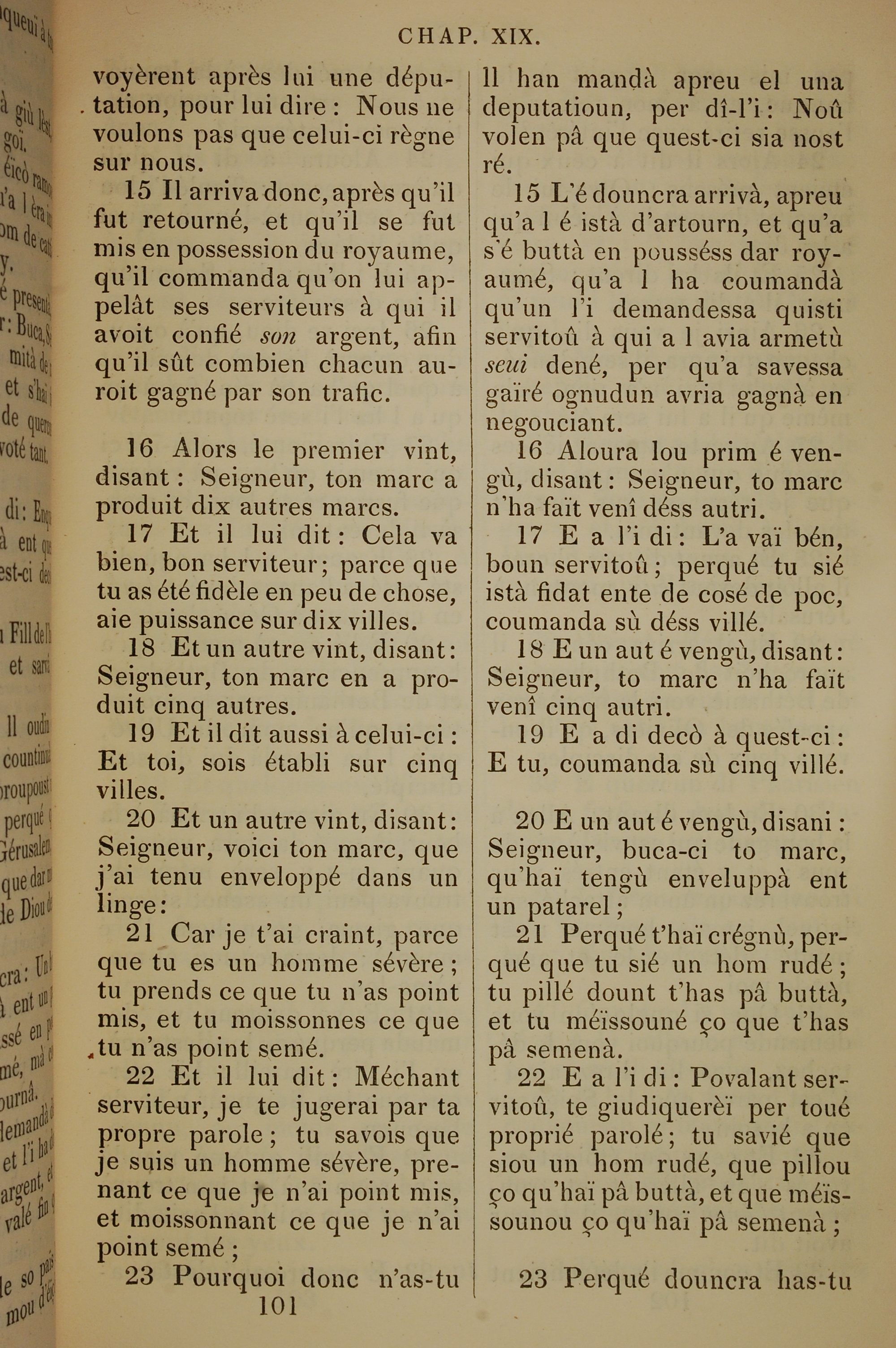 1832年法文聖經路加福音及約翰福音 路加福音 19 章 15 節到 19 章 23 節