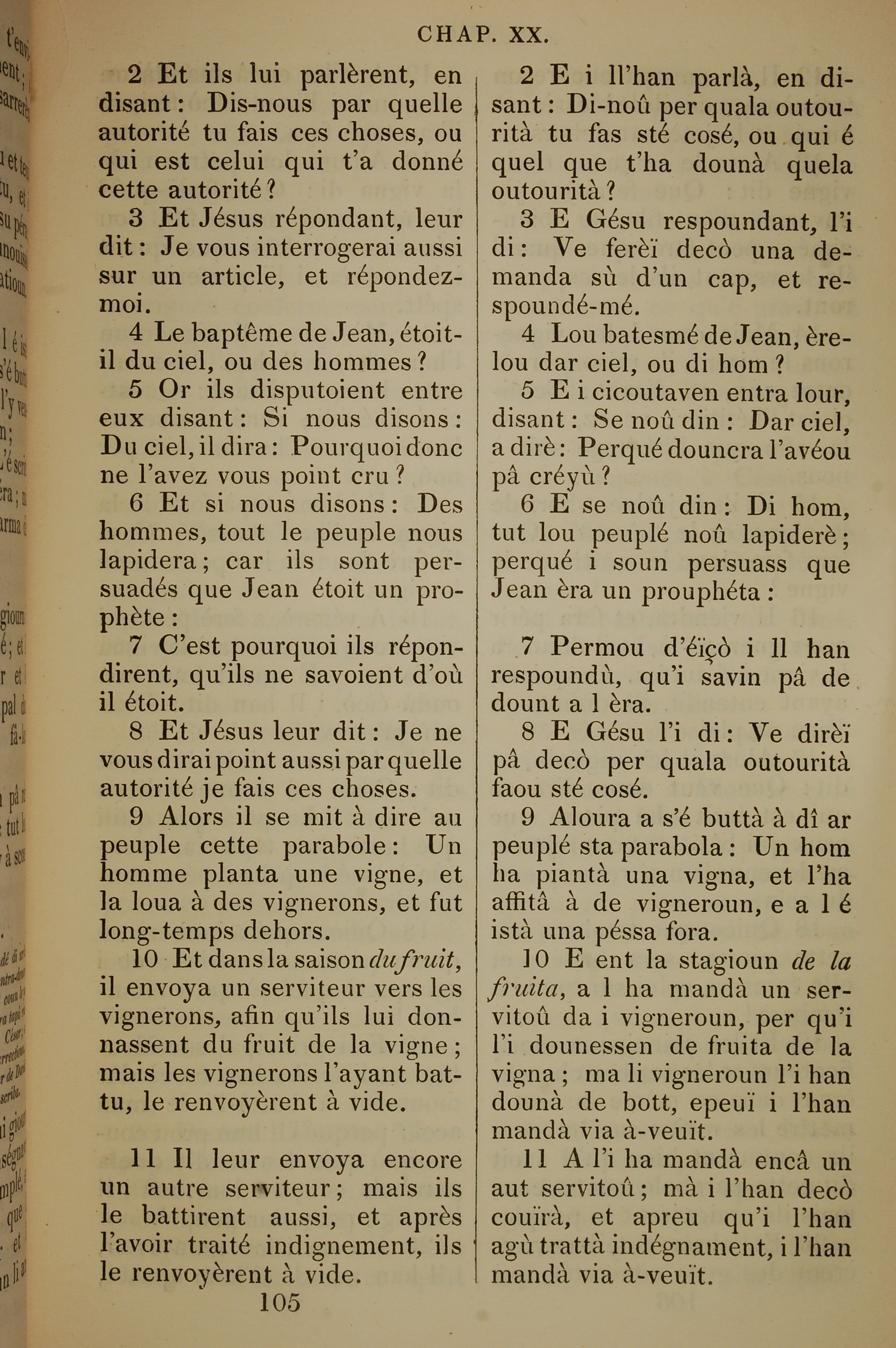 1832年法文聖經路加福音及約翰福音 路加福音 20 章 2 節到 20 章 11 節