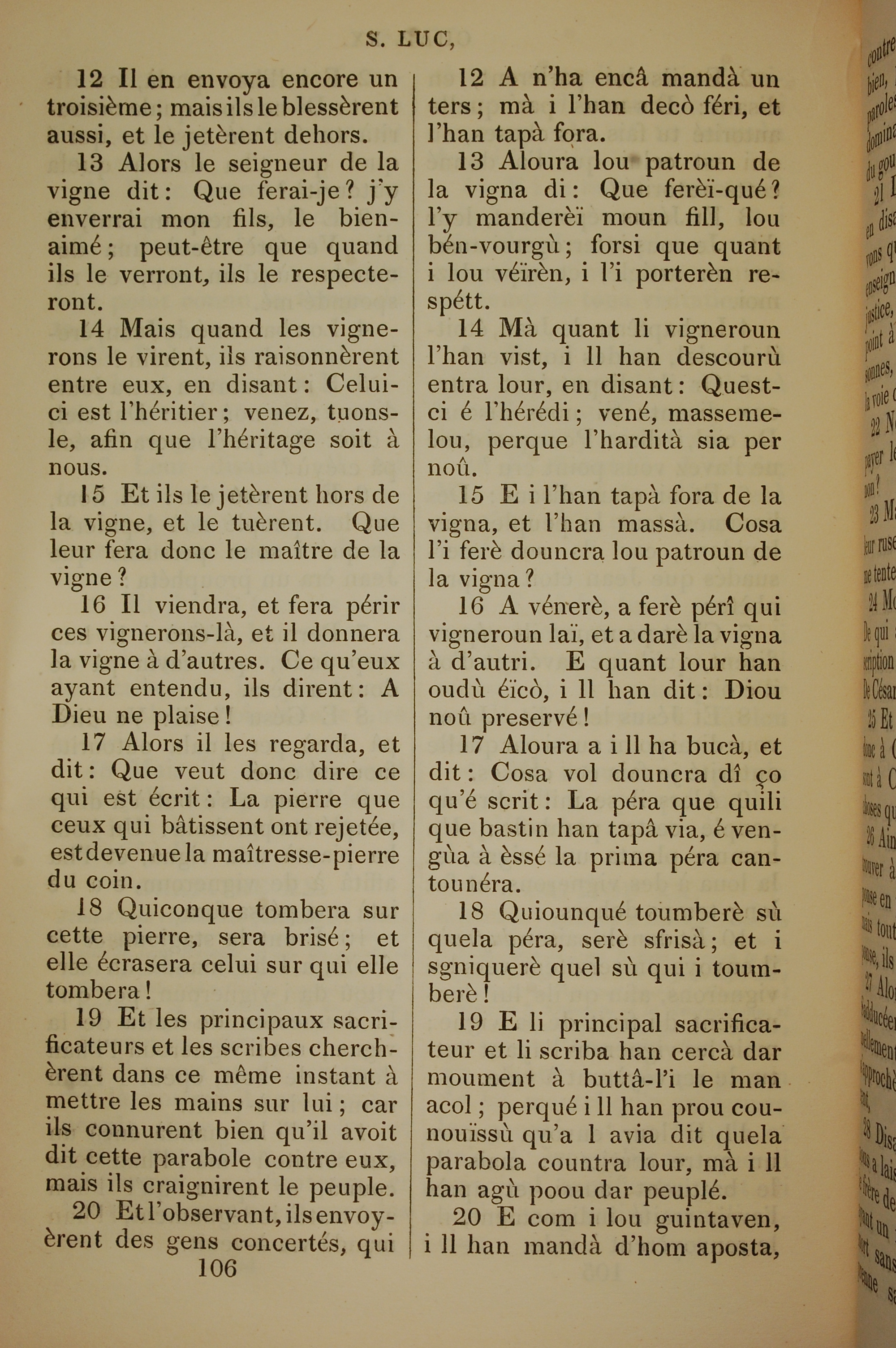 1832年法文聖經路加福音及約翰福音 路加福音 20 章 12 節到 20 章 20 節