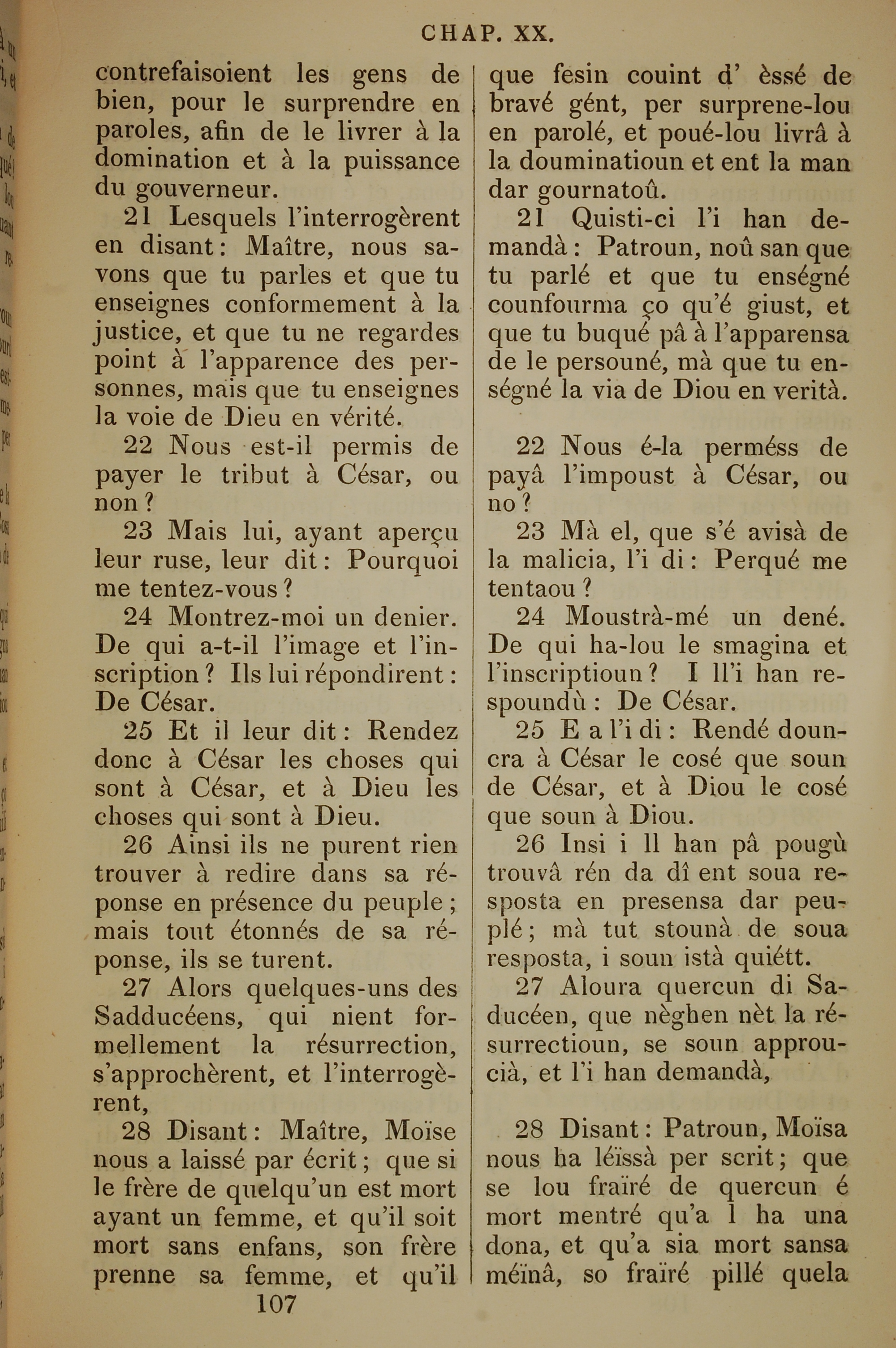 1832年法文聖經路加福音及約翰福音 路加福音 20 章 21 節到 20 章 28 節