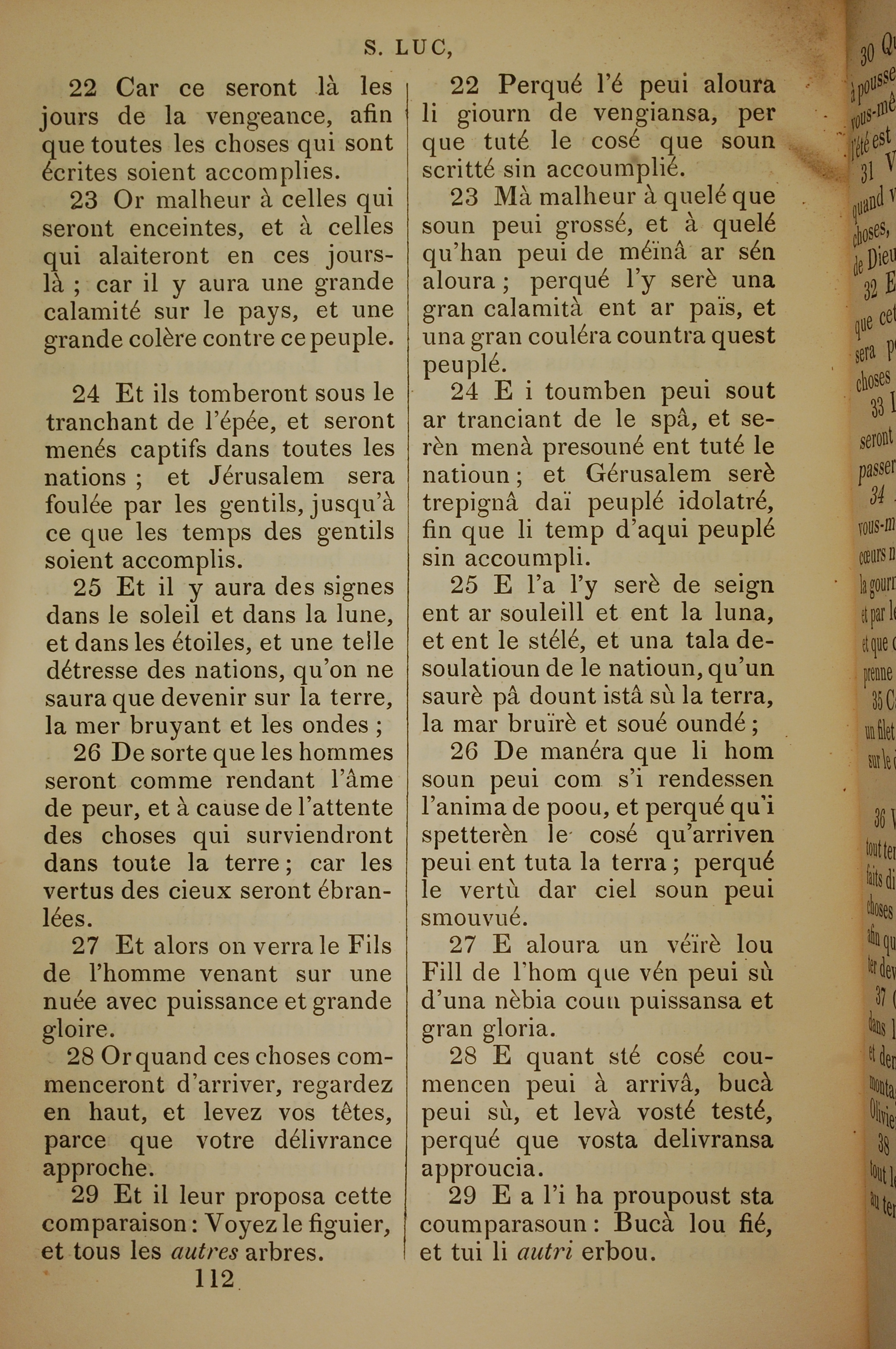 1832年法文聖經路加福音及約翰福音 路加福音 21 章 22 節到 21 章 29 節