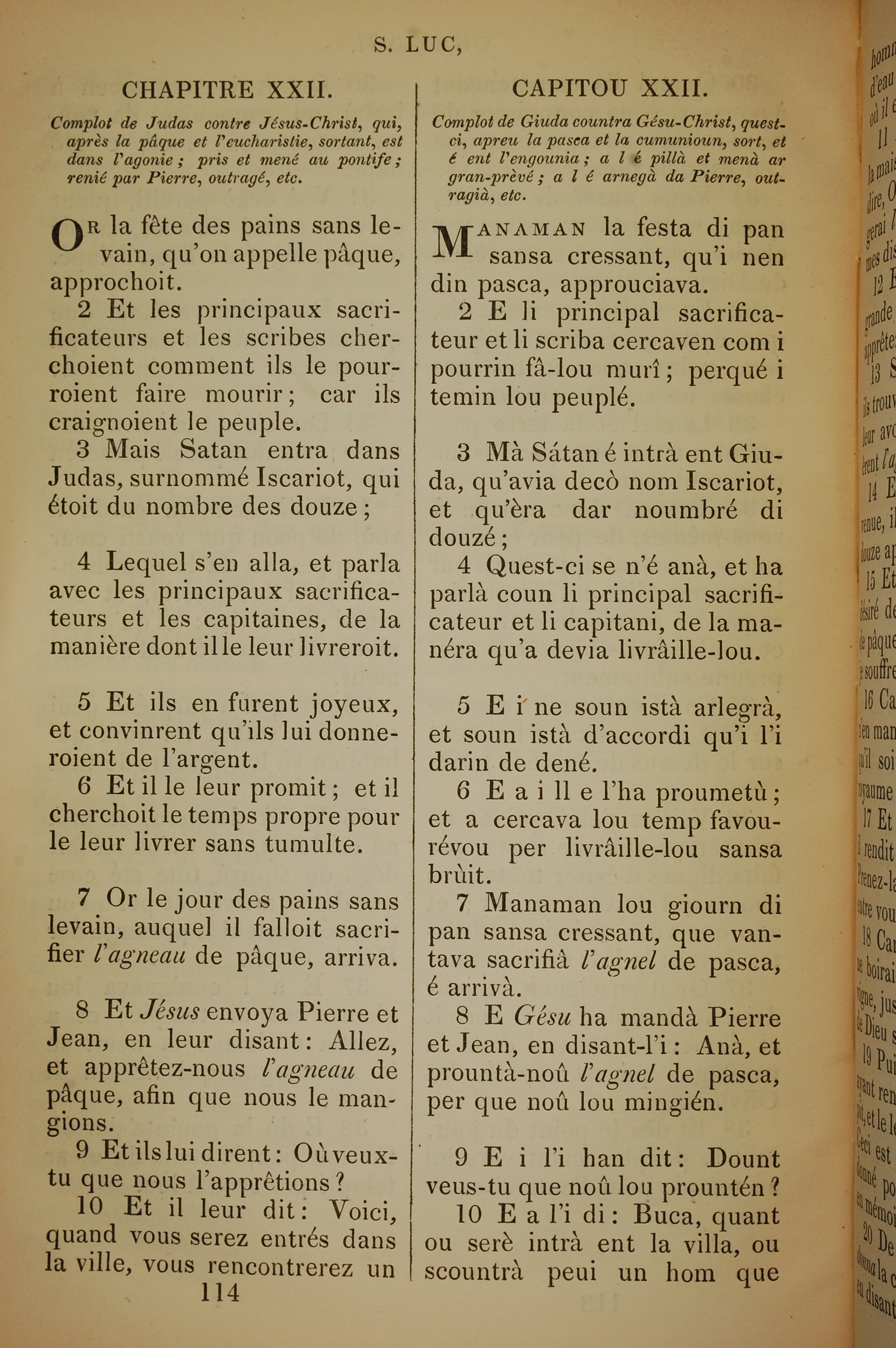 1832年法文聖經路加福音及約翰福音 路加福音 22 章 1 節到 22 章 10 節