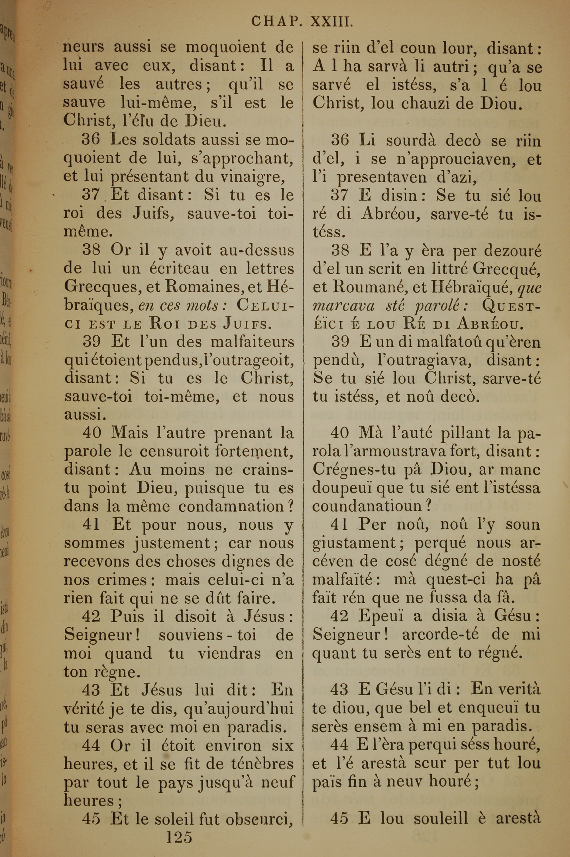 1832年法文聖經路加福音及約翰福音 路加福音 23 章 36 節到 23 章 45 節