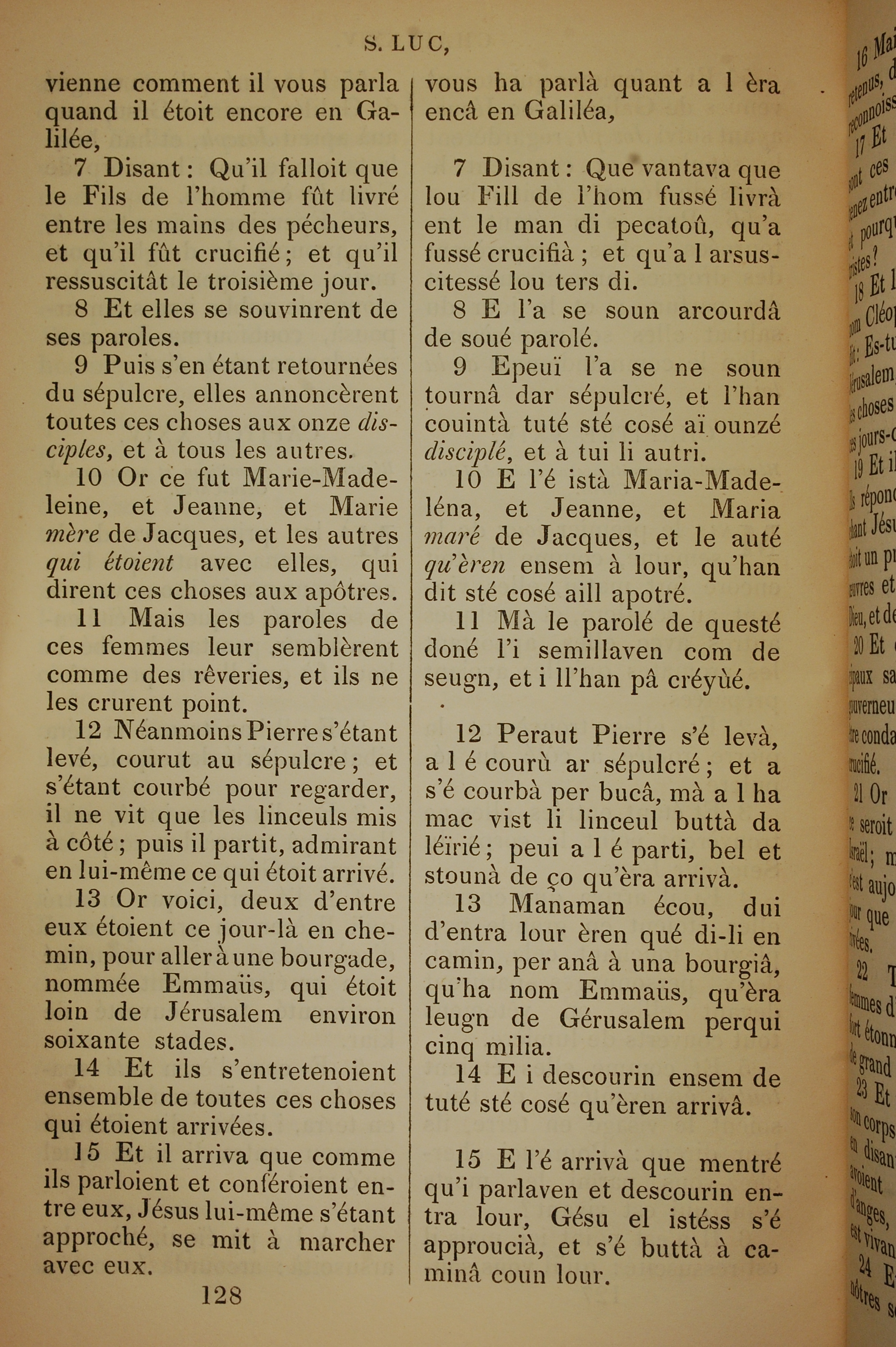 1832年法文聖經路加福音及約翰福音 路加福音 24 章 7 節到 24 章 15 節