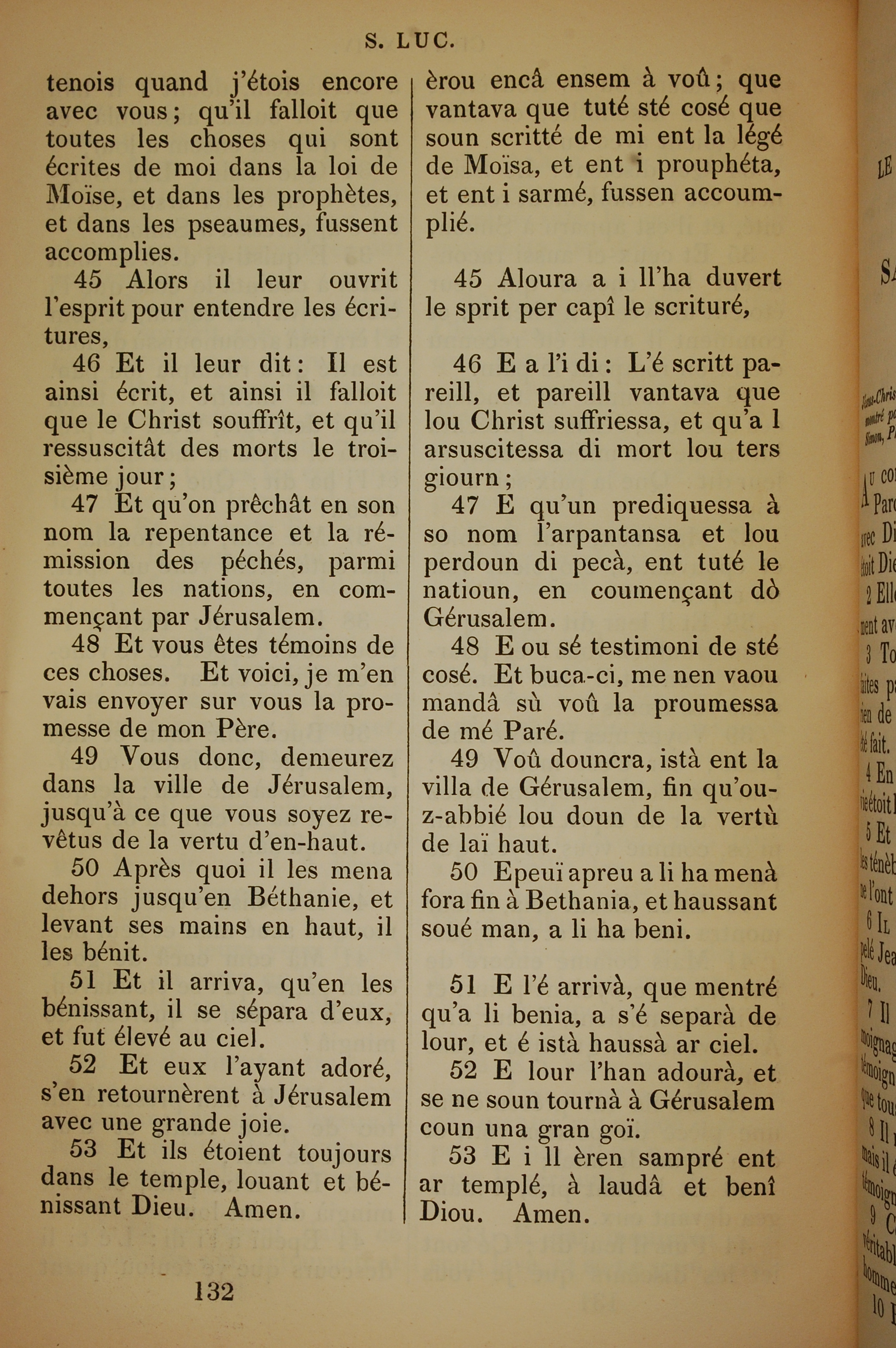 1832年法文聖經路加福音及約翰福音 路加福音 24 章 45 節到 24 章 53 節