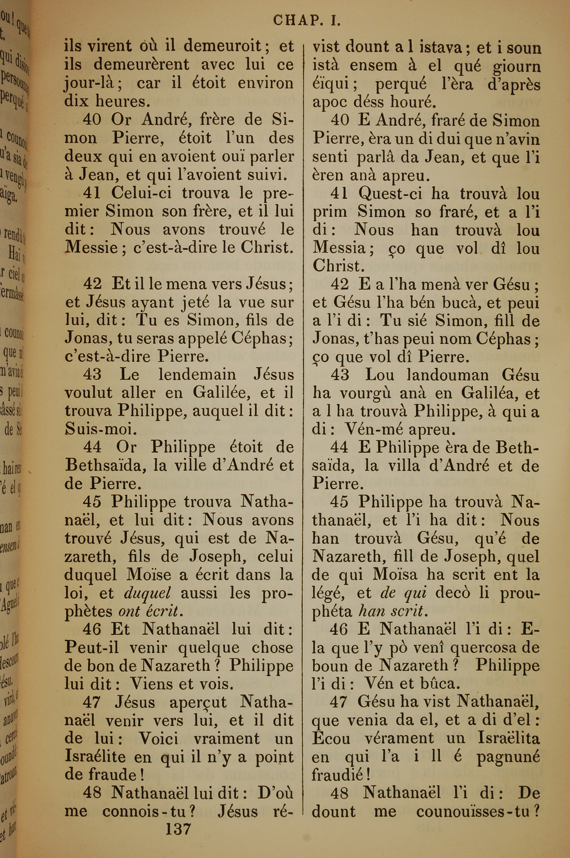 1832年法文聖經路加福音及約翰福音 約翰福音 1 章 40 節到 1 章 48 節