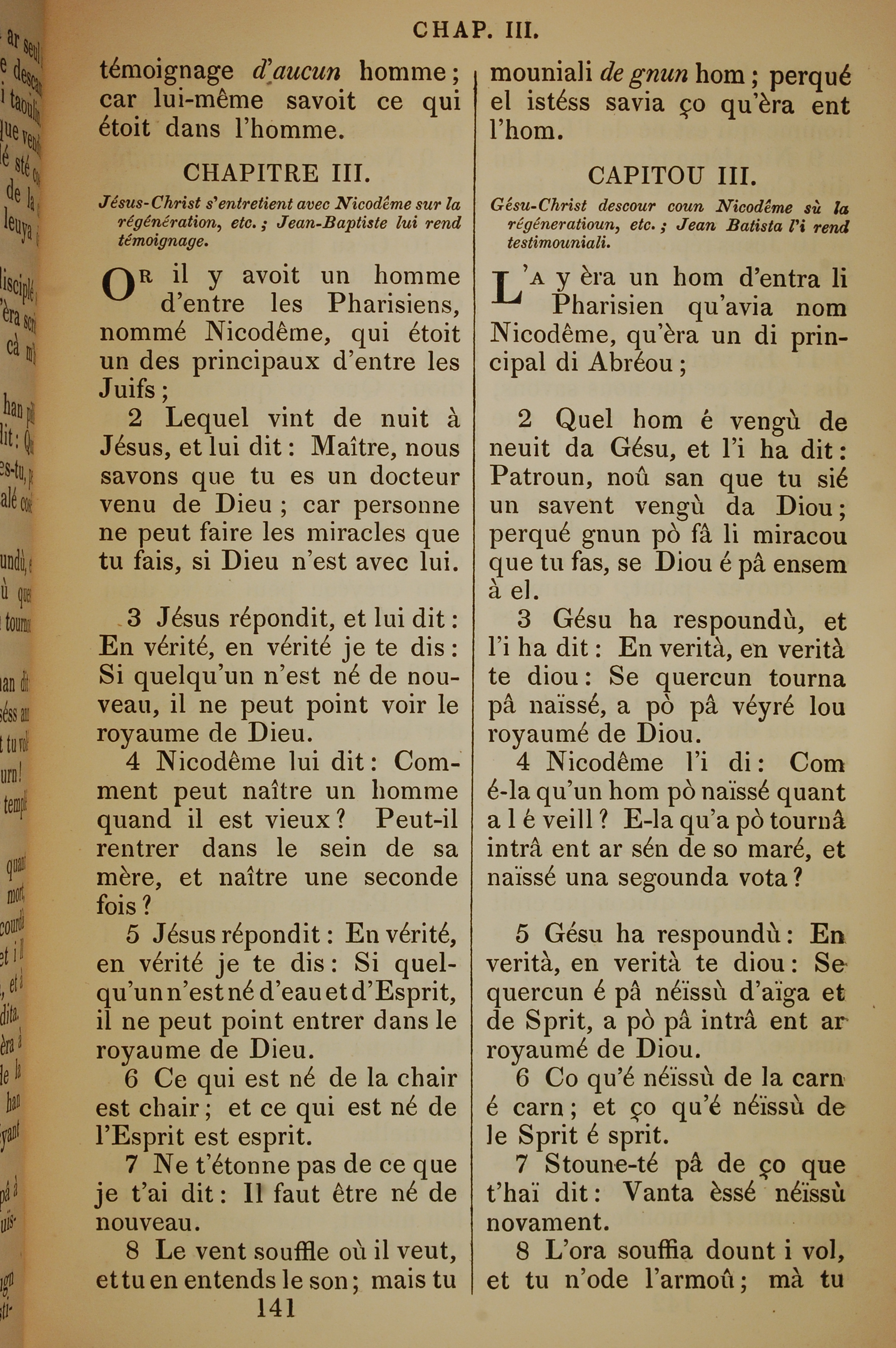 1832年法文聖經路加福音及約翰福音 約翰福音 3 章 1 節到 3 章 8 節