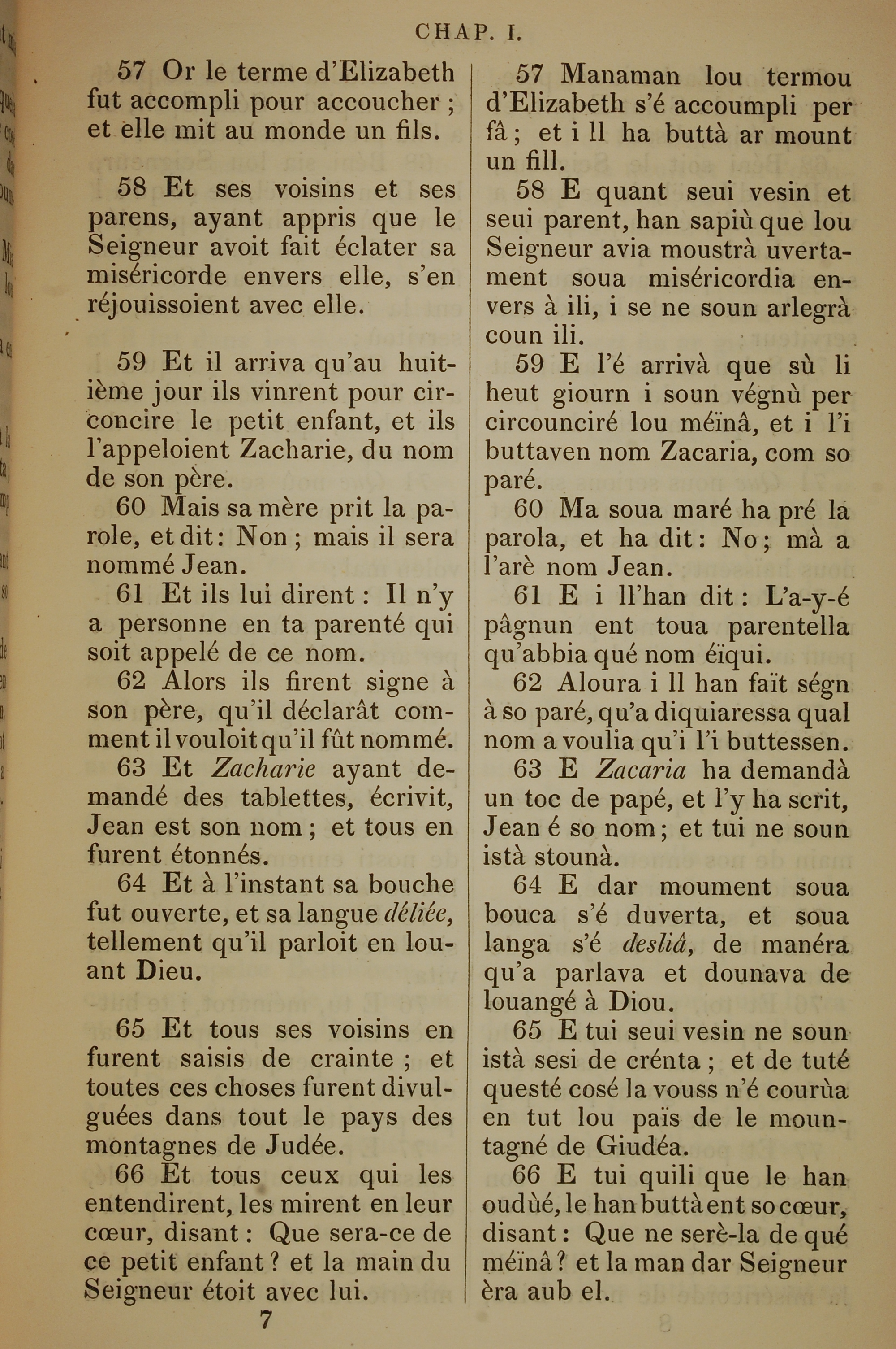 1832年法文聖經路加福音及約翰福音 路加福音 1 章 57 節到 1 章 66 節