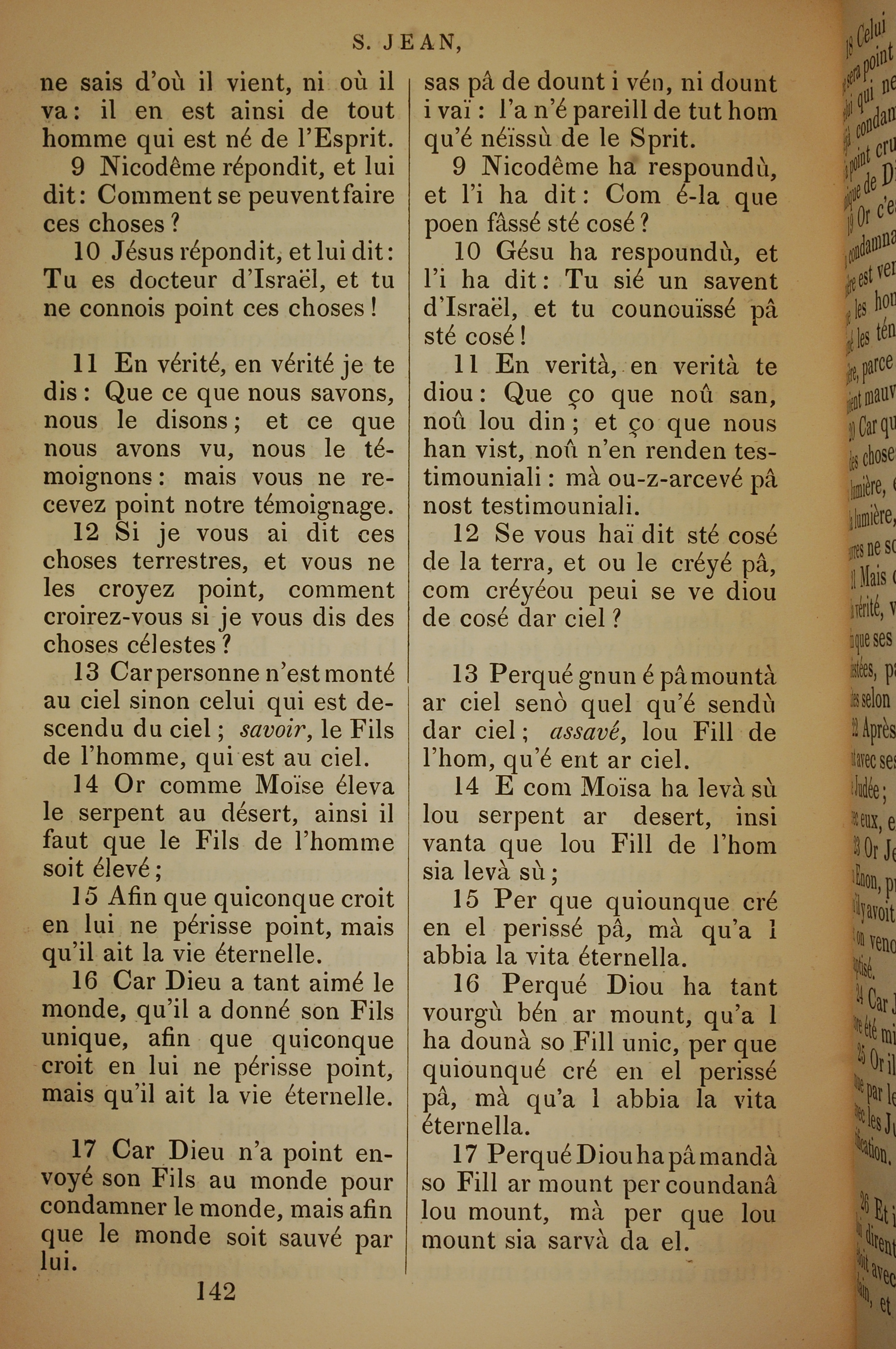 1832年法文聖經路加福音及約翰福音 約翰福音 3 章 9 節到 3 章 17 節