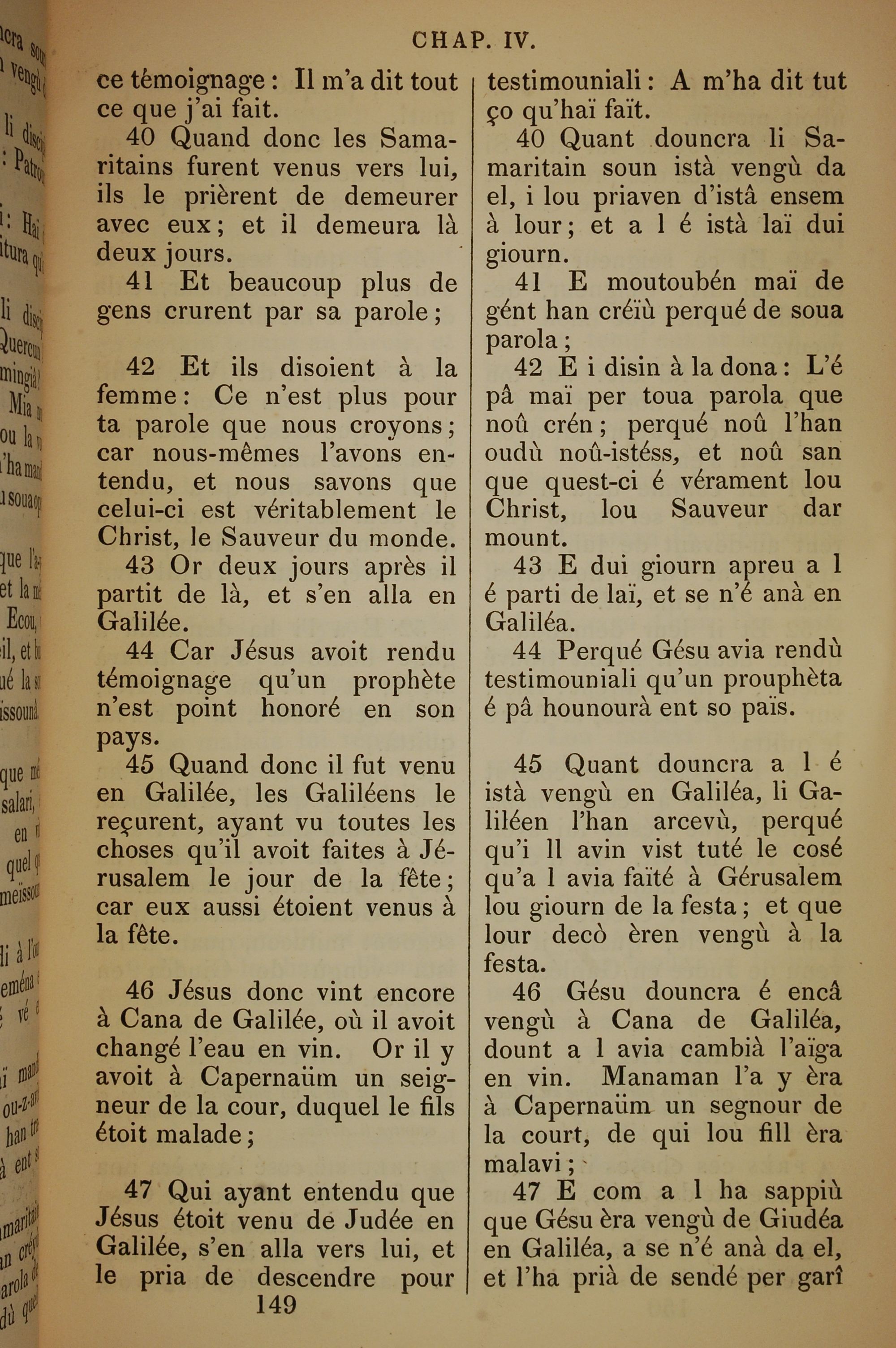 1832年法文聖經路加福音及約翰福音 約翰福音 4 章 40 節到 4 章 47 節