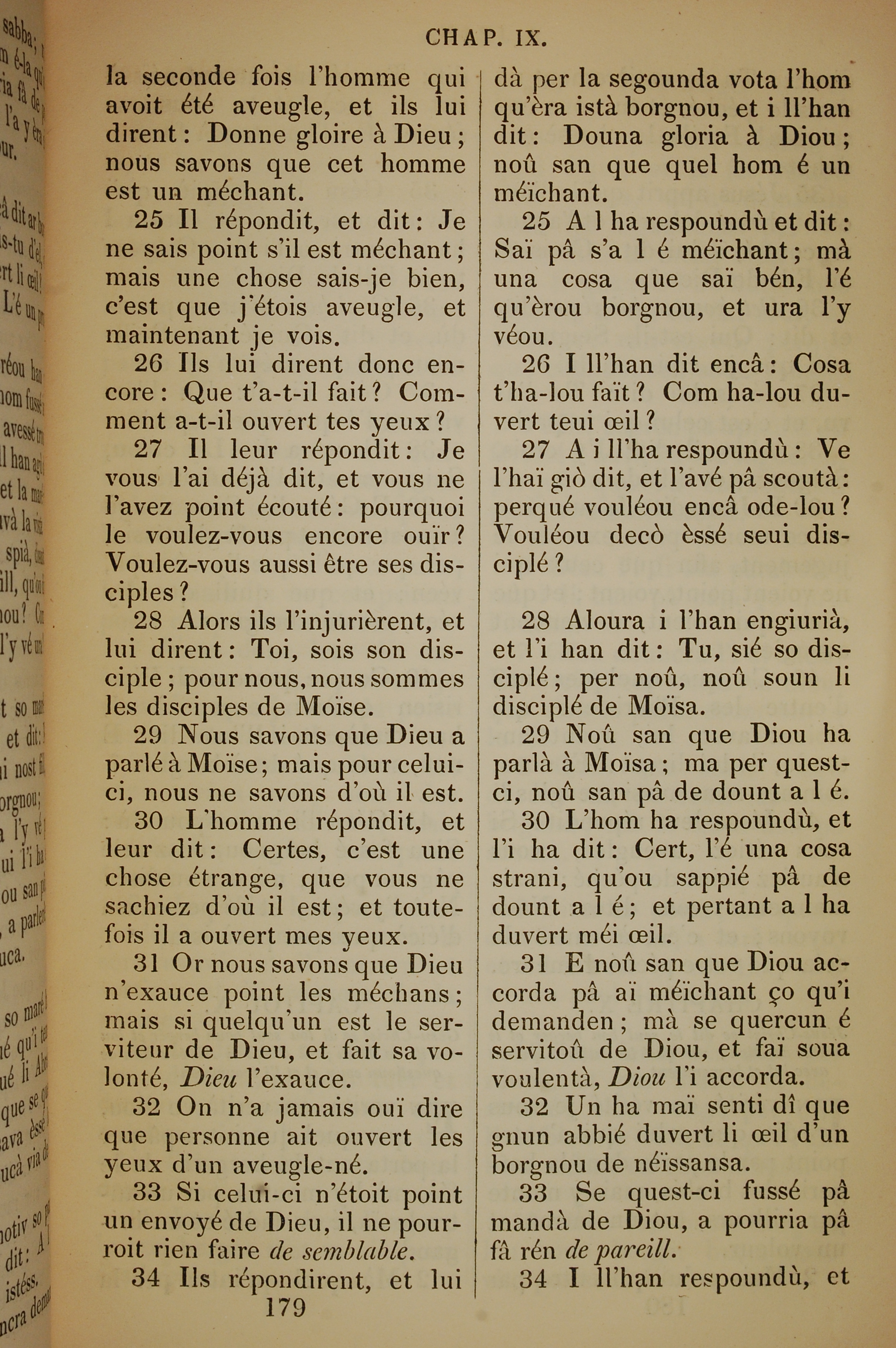 1832年法文聖經路加福音及約翰福音 約翰福音 9 章 25 節到 9 章 34 節