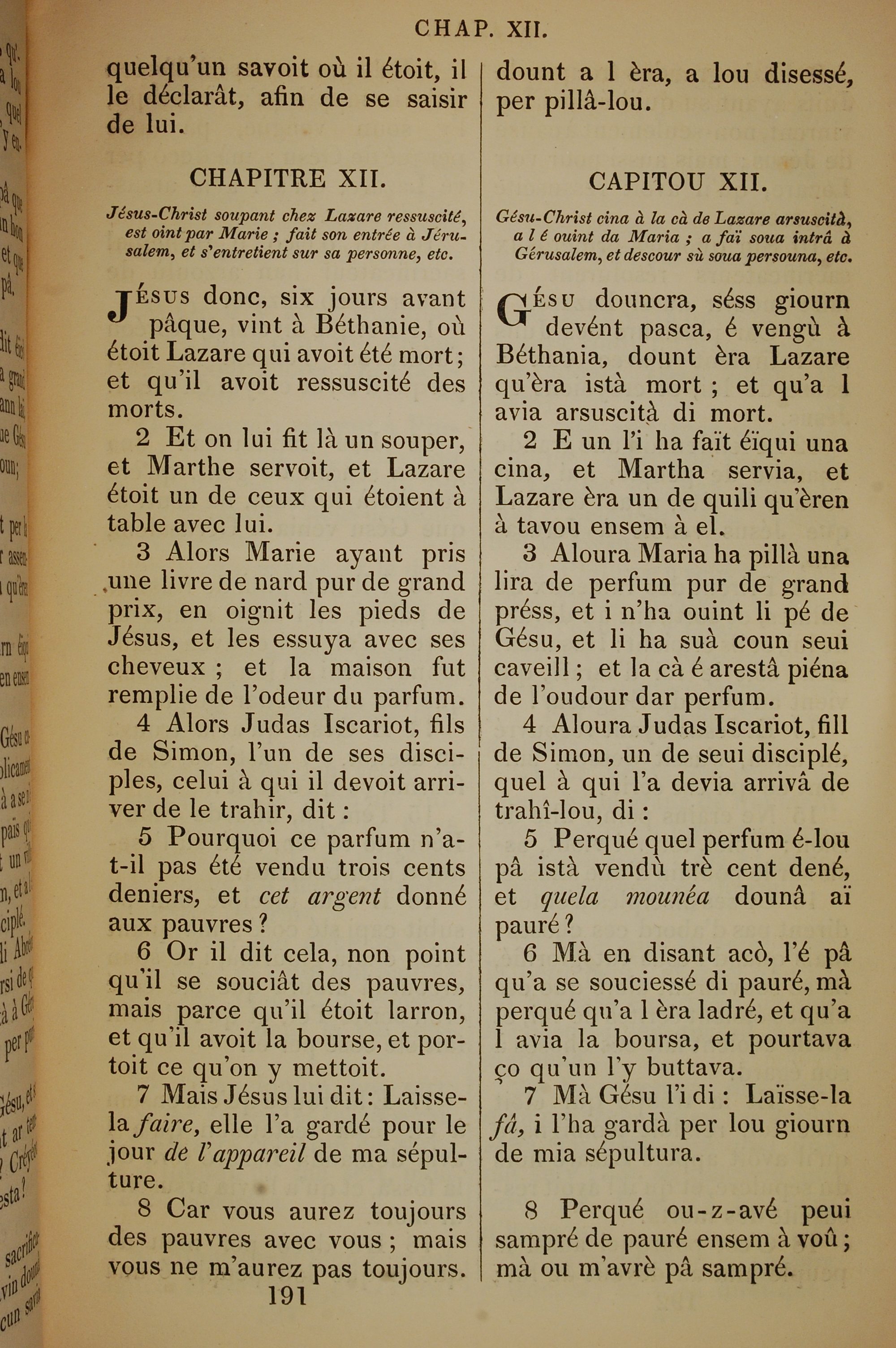 1832年法文聖經路加福音及約翰福音 約翰福音 12 章 1 節到 12 章 8 節
