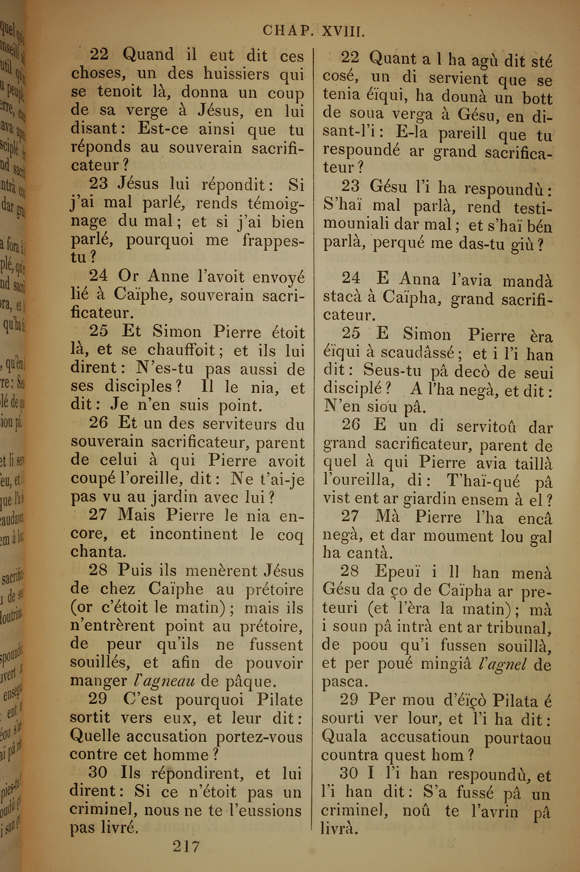 1832年法文聖經路加福音及約翰福音 約翰福音 18 章 22 節到 18 章 30 節