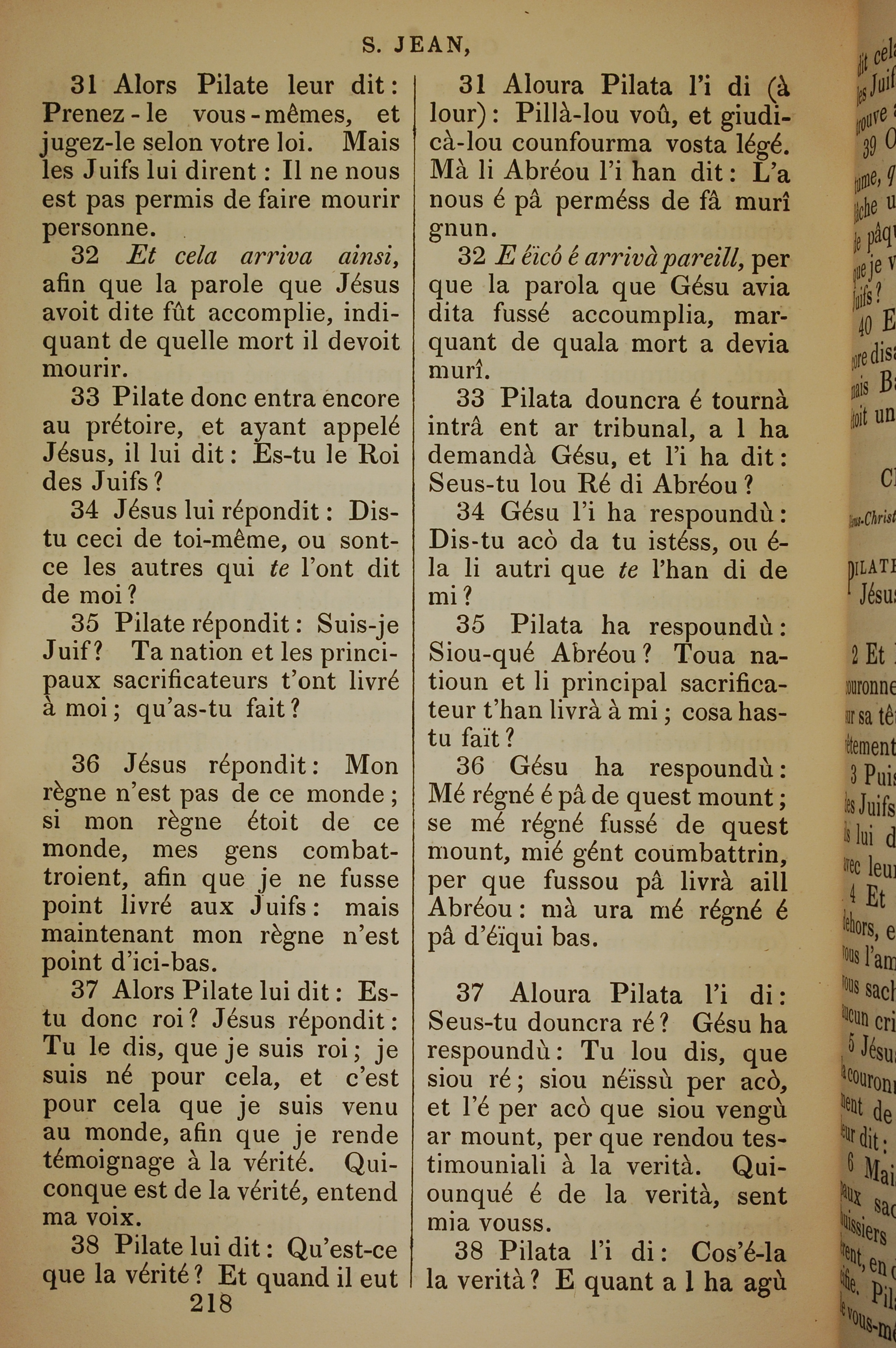 1832年法文聖經路加福音及約翰福音 約翰福音 18 章 31 節到 18 章 38 節