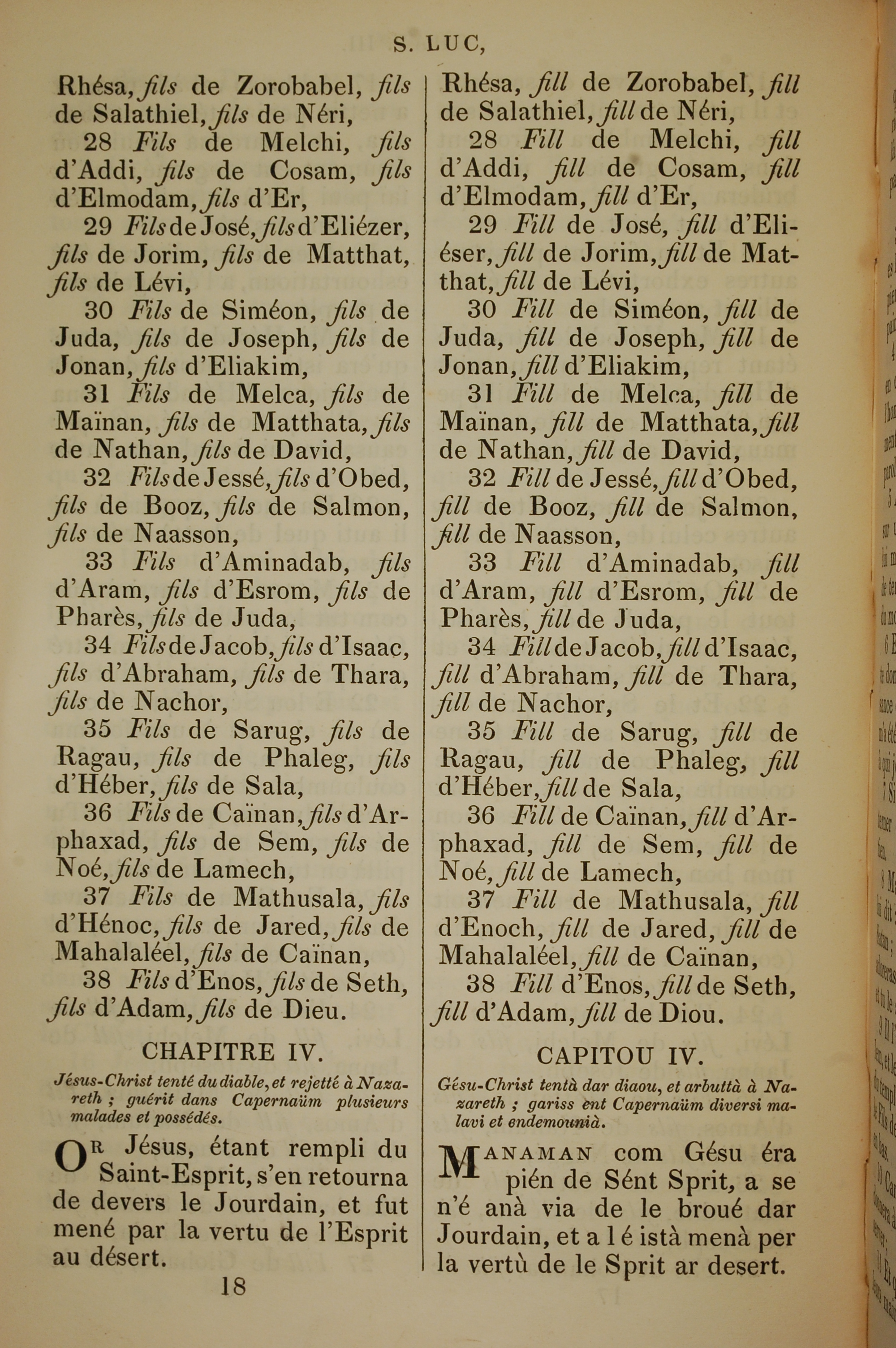 1832年法文聖經路加福音及約翰福音 路加福音 3 章 28 節到 4 章 1 節