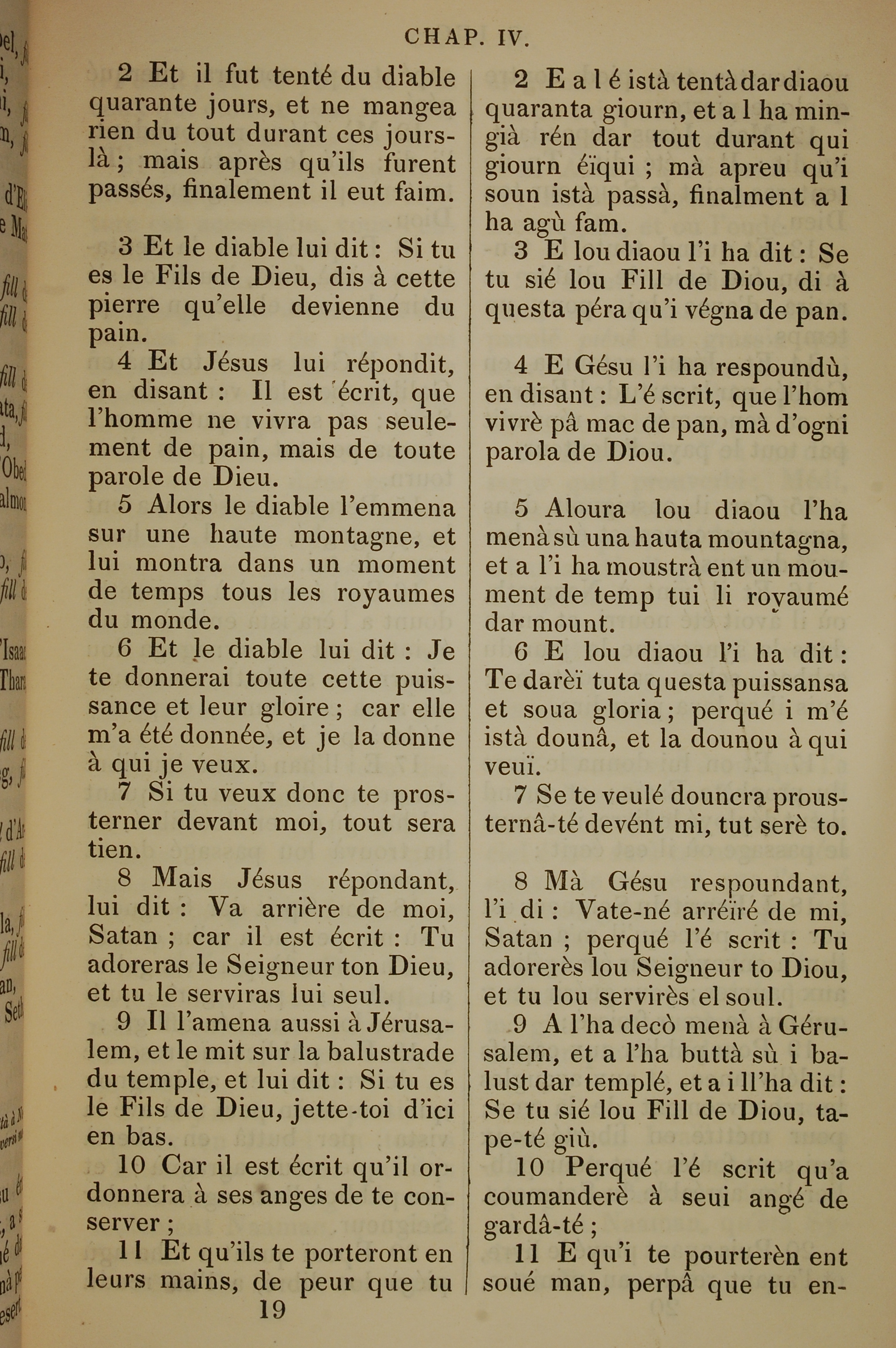 1832年法文聖經路加福音及約翰福音 路加福音 4 章 2 節到 4 章 11 節
