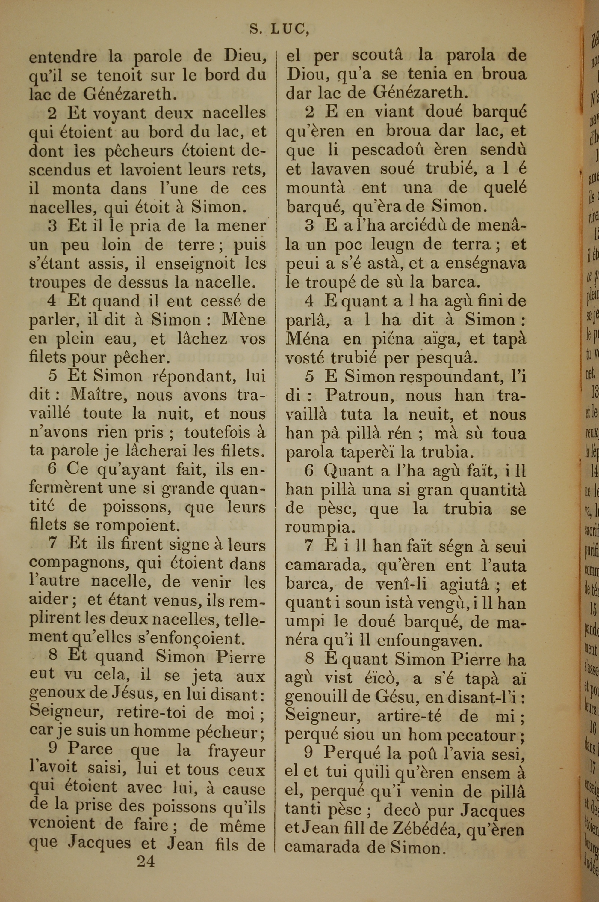 1832年法文聖經路加福音及約翰福音 路加福音 5 章 2 節到 5 章 9 節