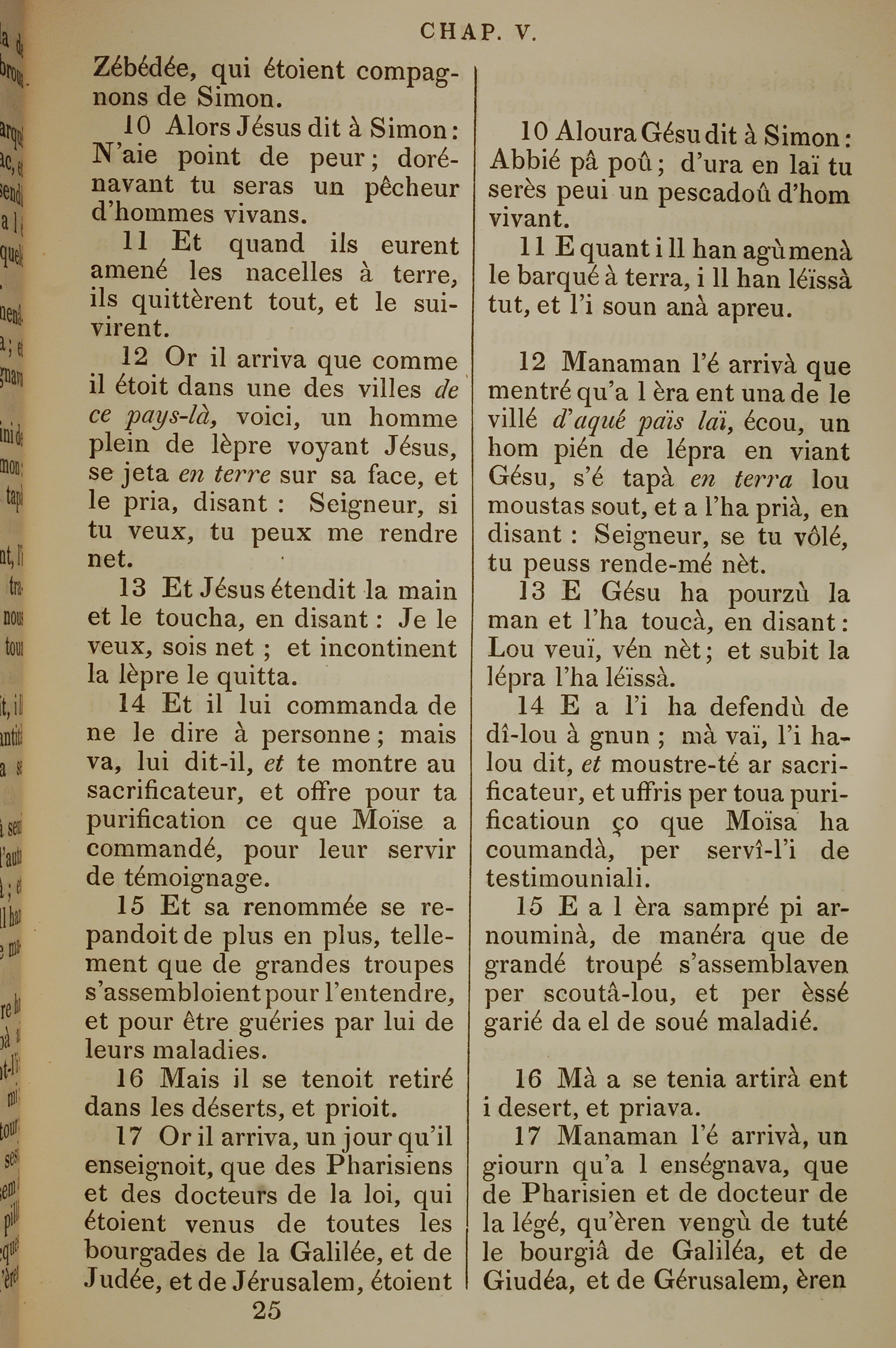 1832年法文聖經路加福音及約翰福音 路加福音 5 章 10 節到 5 章 17 節