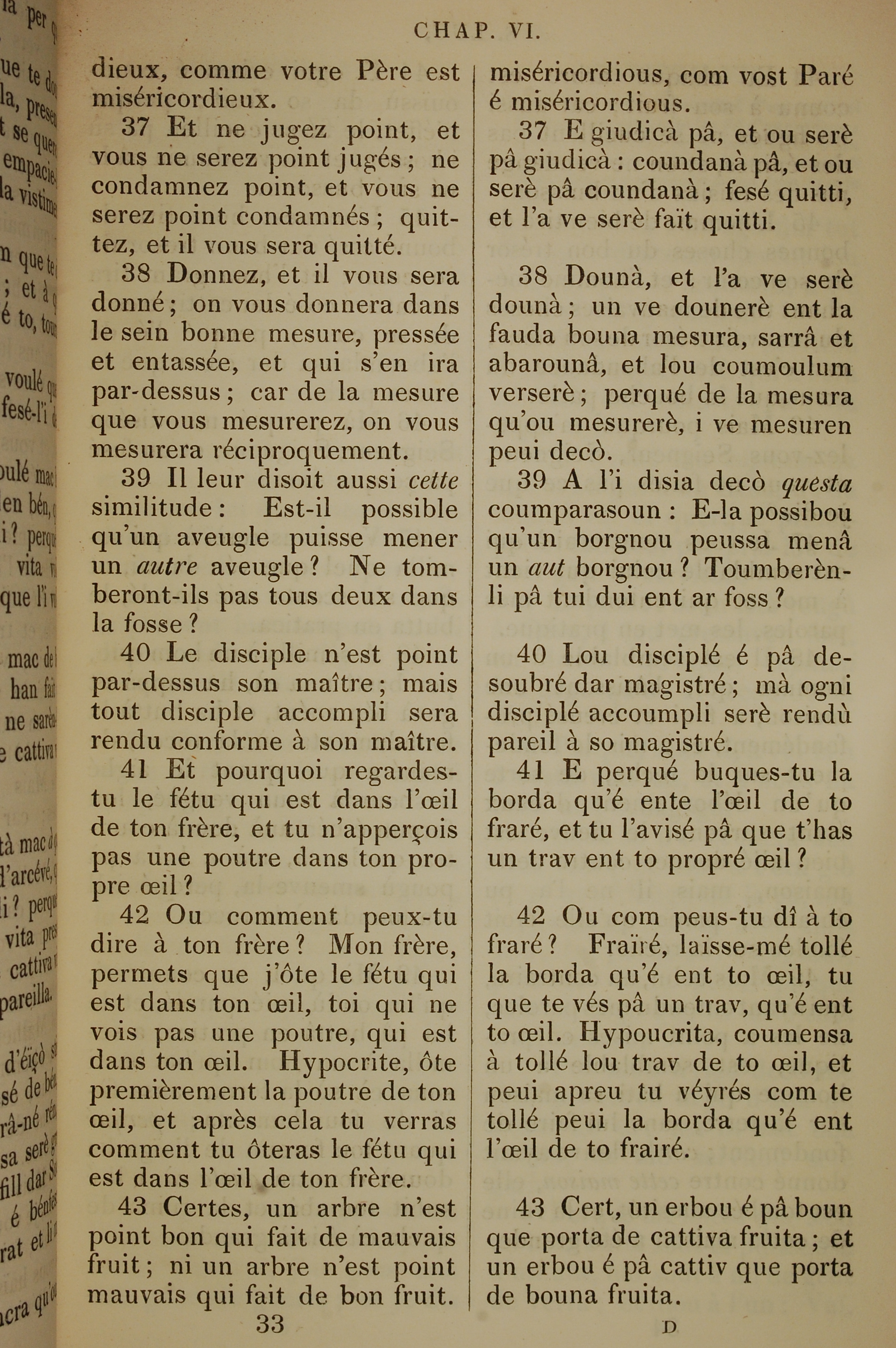 1832年法文聖經路加福音及約翰福音 路加福音 6 章 37 節到 6 章 43 節