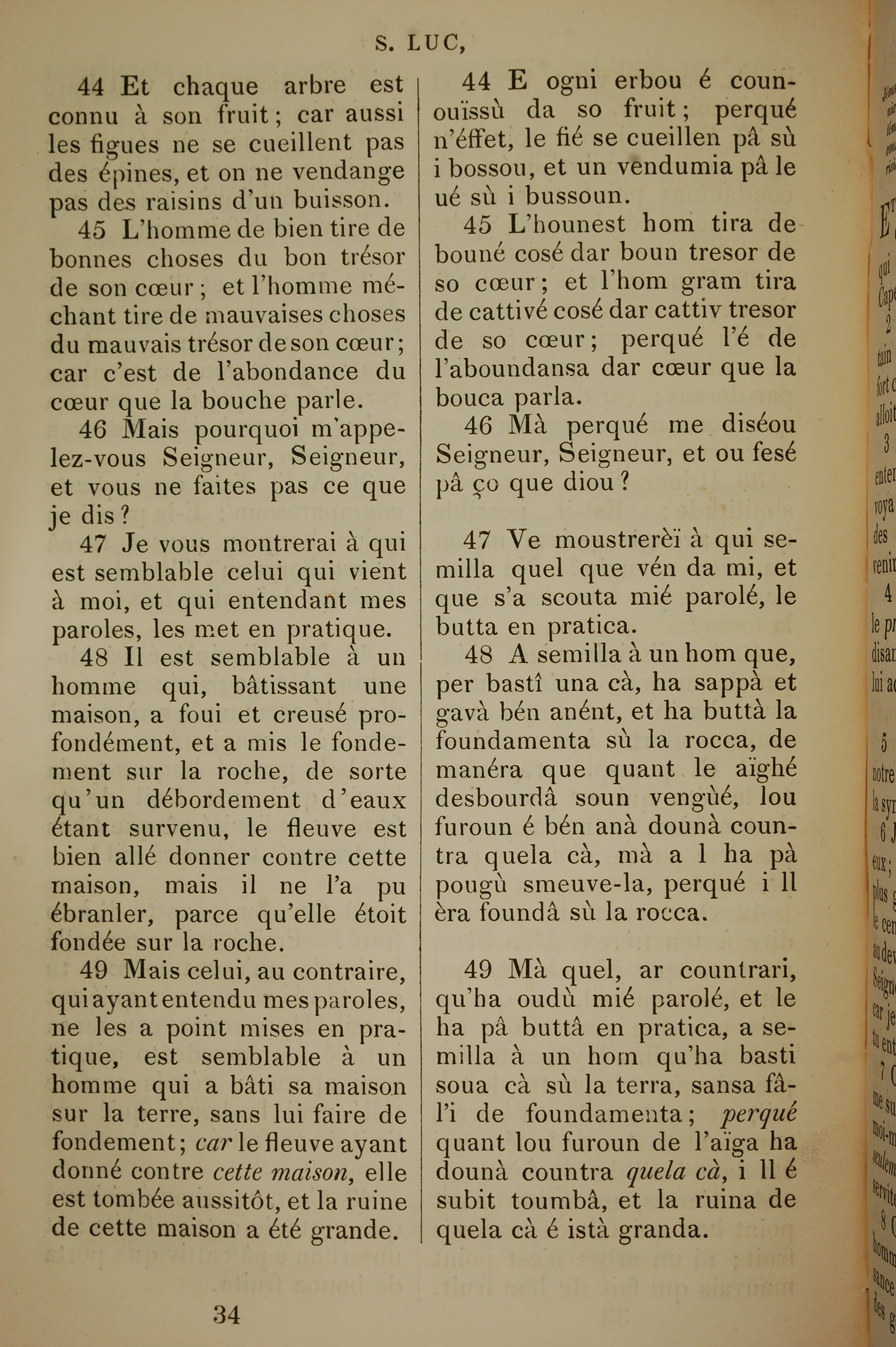 1832年法文聖經路加福音及約翰福音 路加福音 6 章 44 節到 6 章 49 節