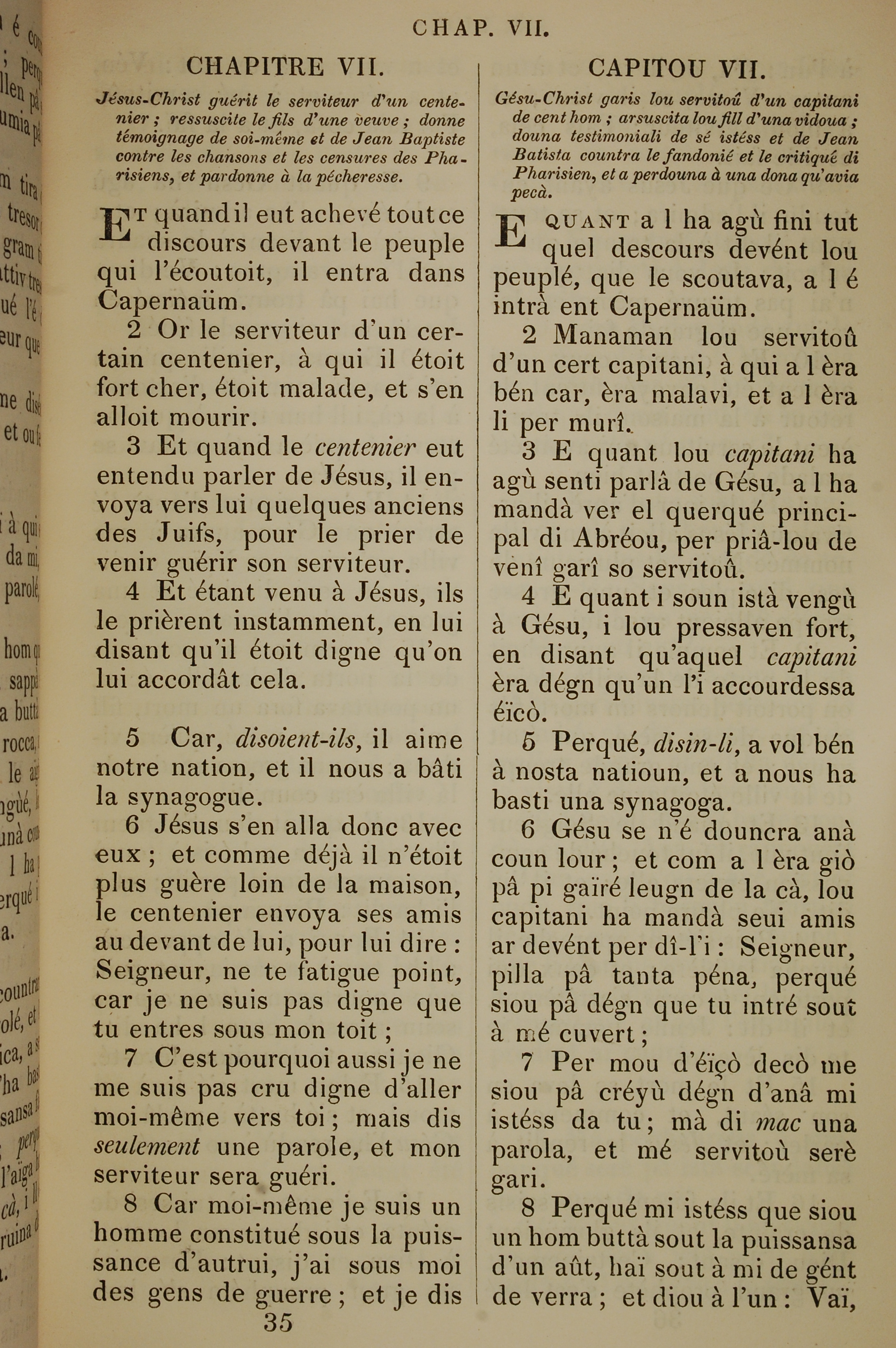 1832年法文聖經路加福音及約翰福音 路加福音 7 章 1 節到 7 章 8 節