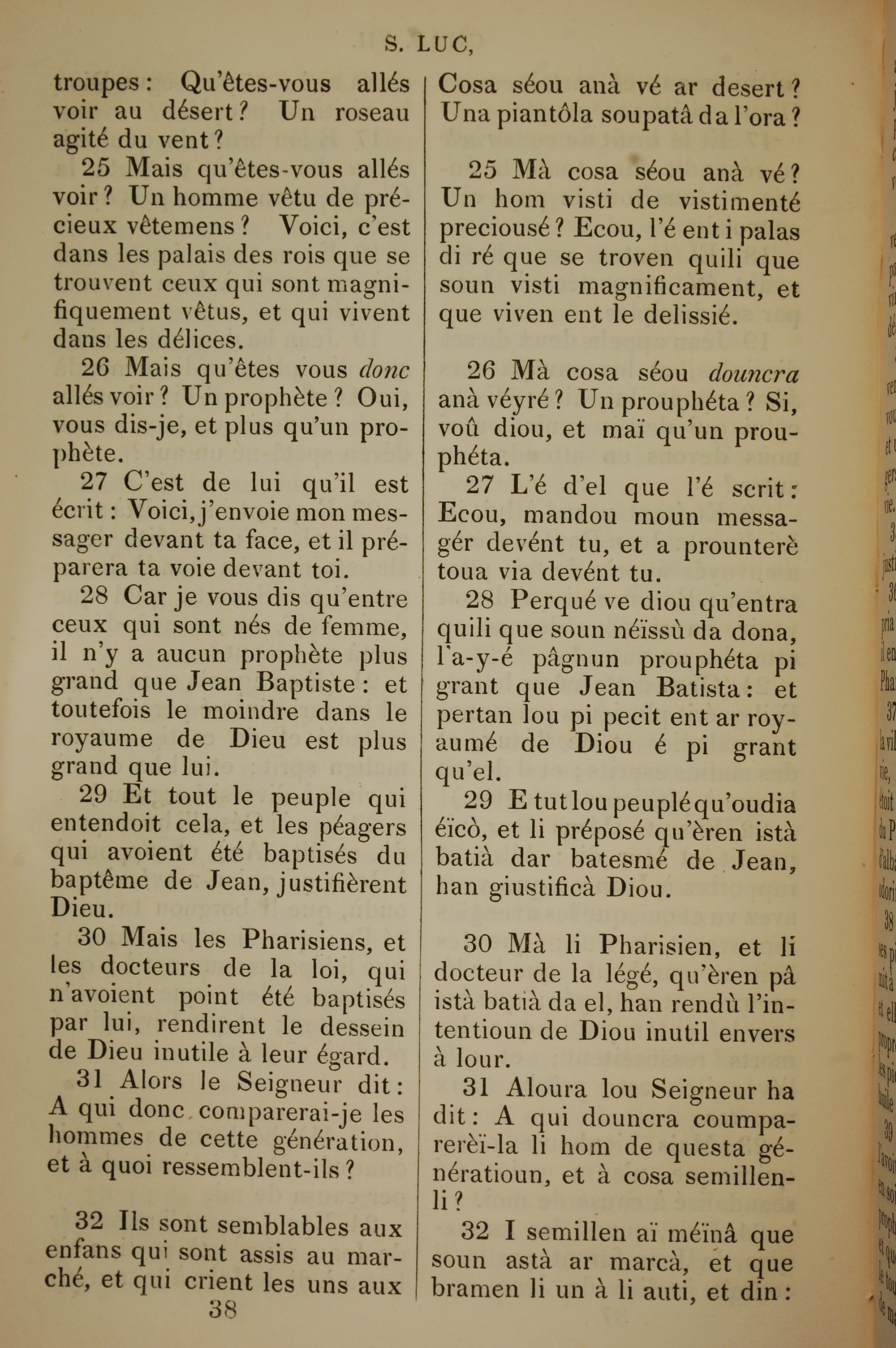 1832年法文聖經路加福音及約翰福音 路加福音 7 章 25 節到 7 章 32 節