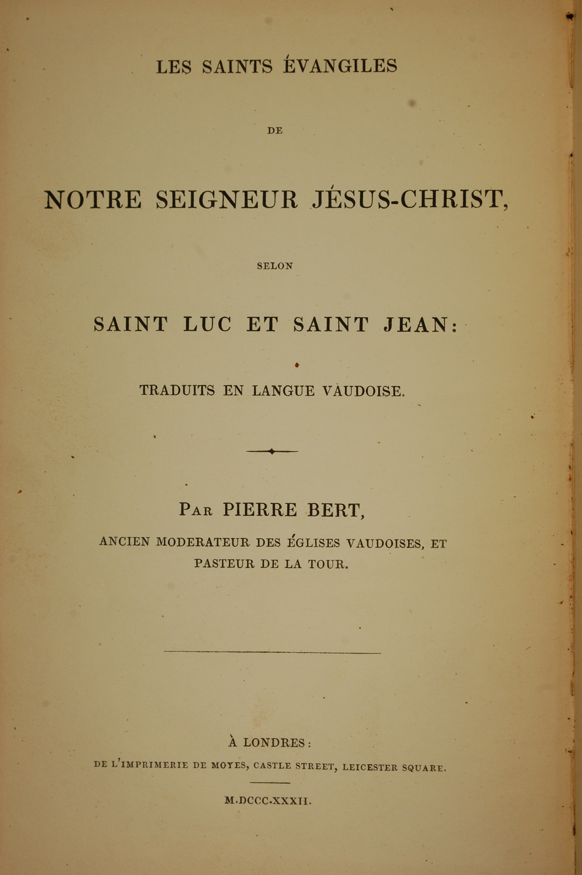 1832年法文聖經路加福音及約翰福音 路加福音 0 章 5 節到 0 章 5 節