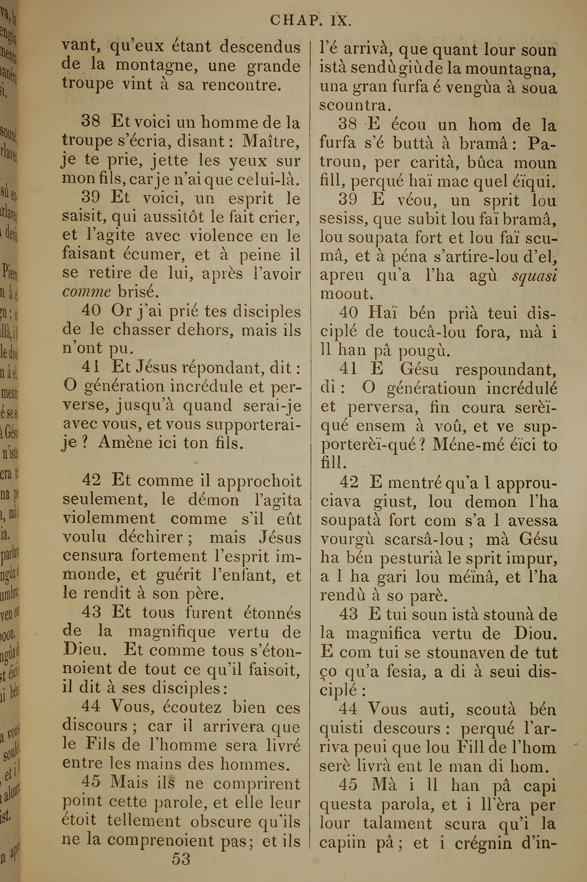 1832年法文聖經路加福音及約翰福音 路加福音 9 章 38 節到 9 章 45 節