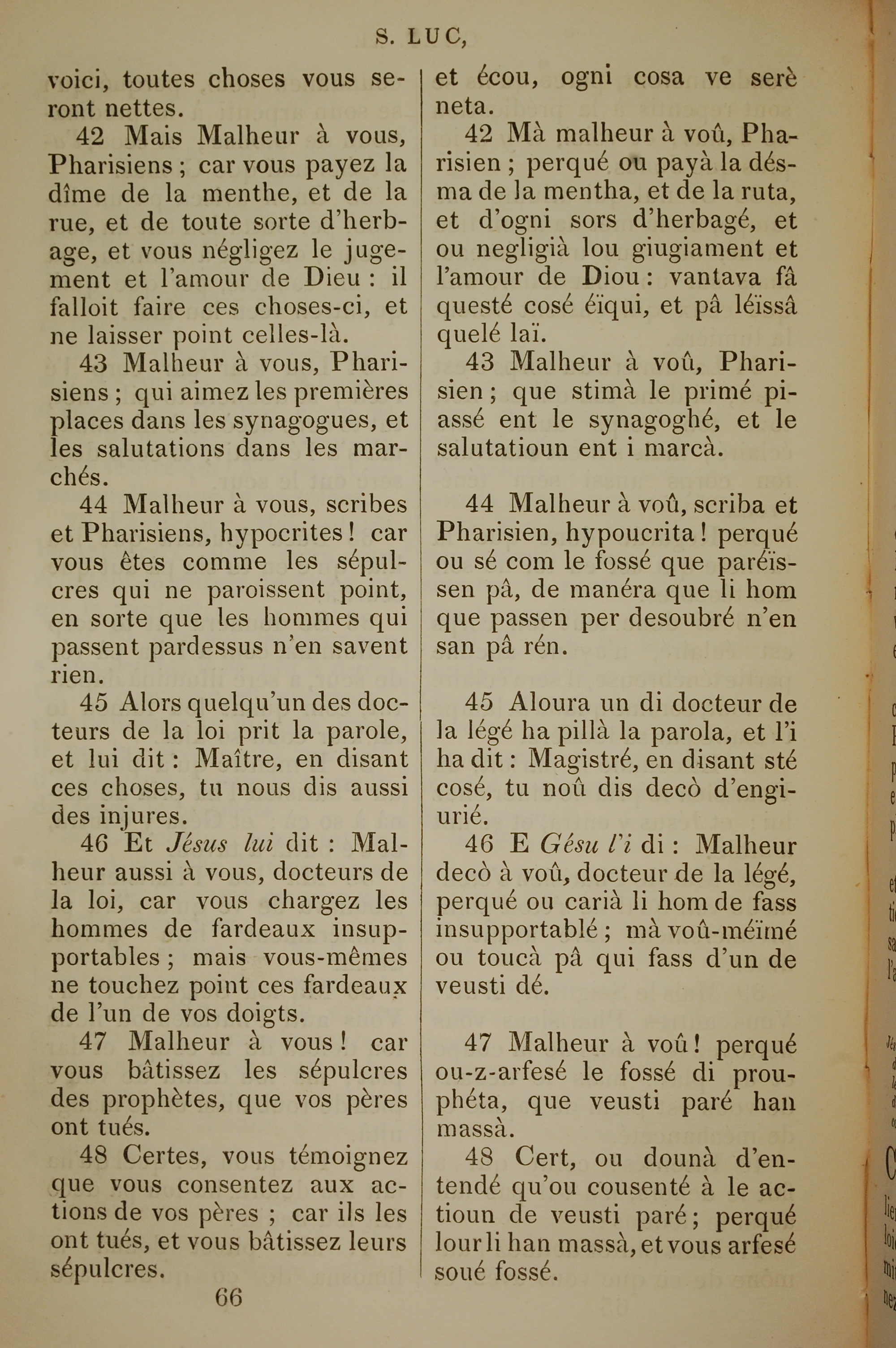 1832年法文聖經路加福音及約翰福音 路加福音 11 章 42 節到 11 章 48 節