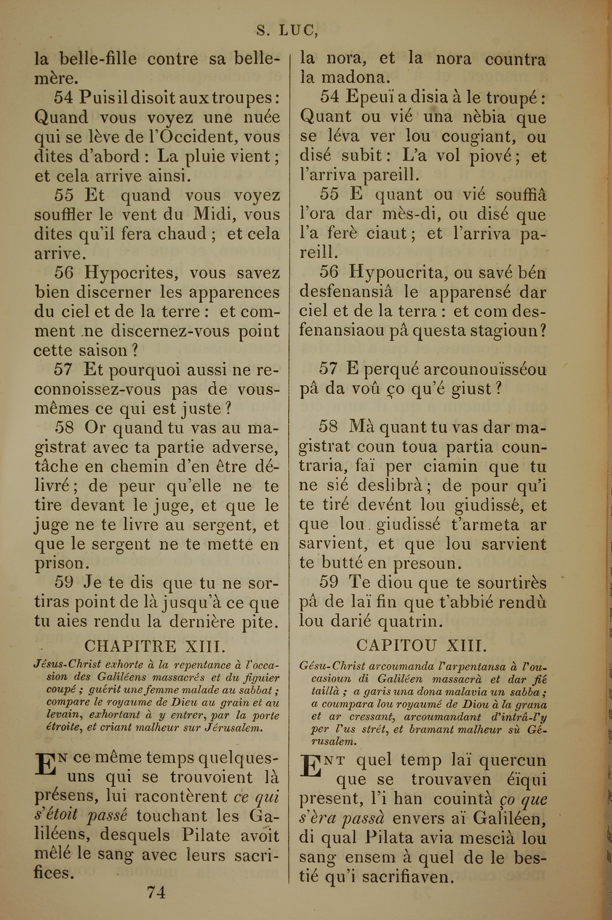 1832年法文聖經路加福音及約翰福音 路加福音 12 章 54 節到 13 章 1 節