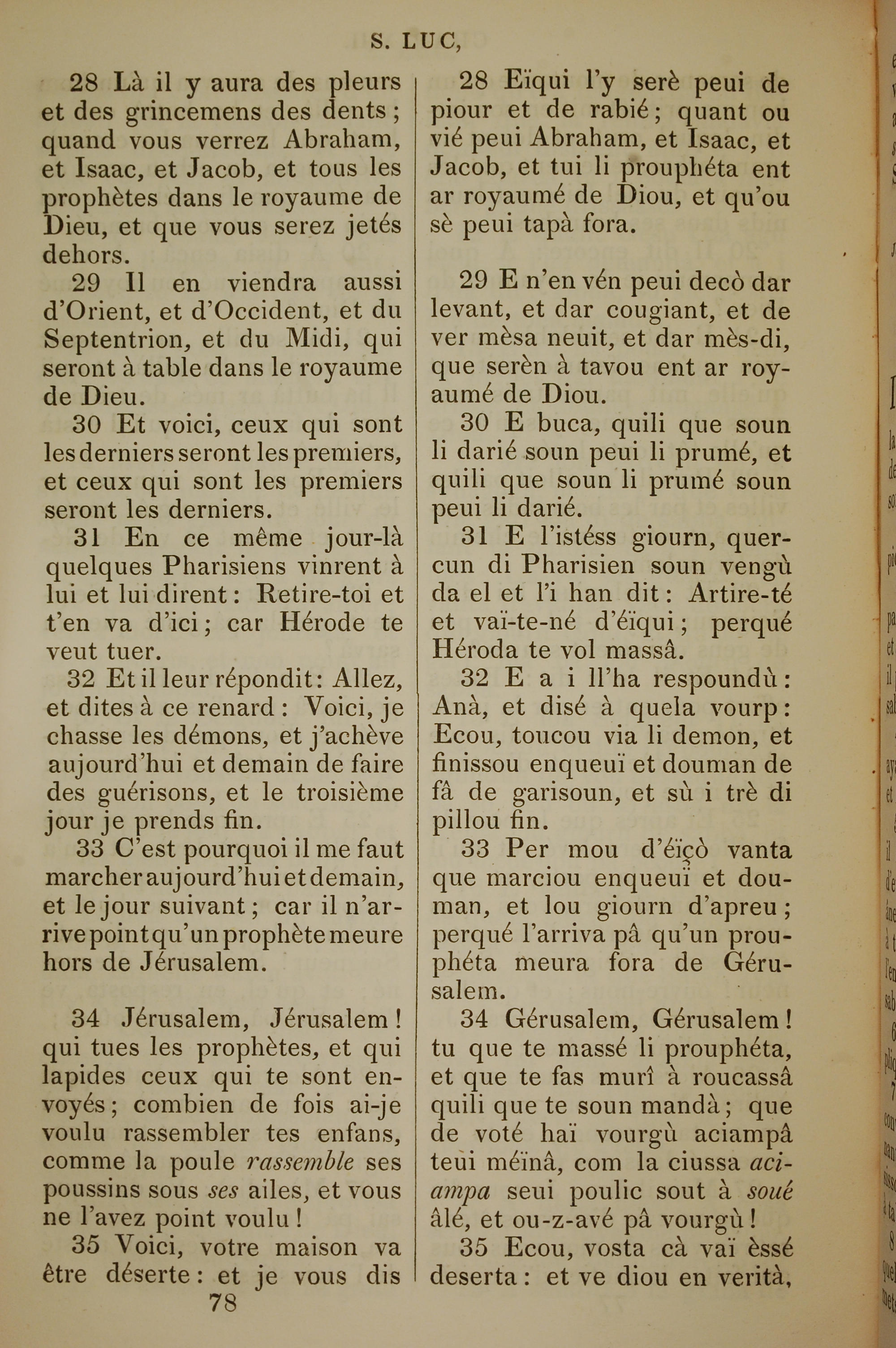 1832年法文聖經路加福音及約翰福音 路加福音 13 章 28 節到 13 章 35 節