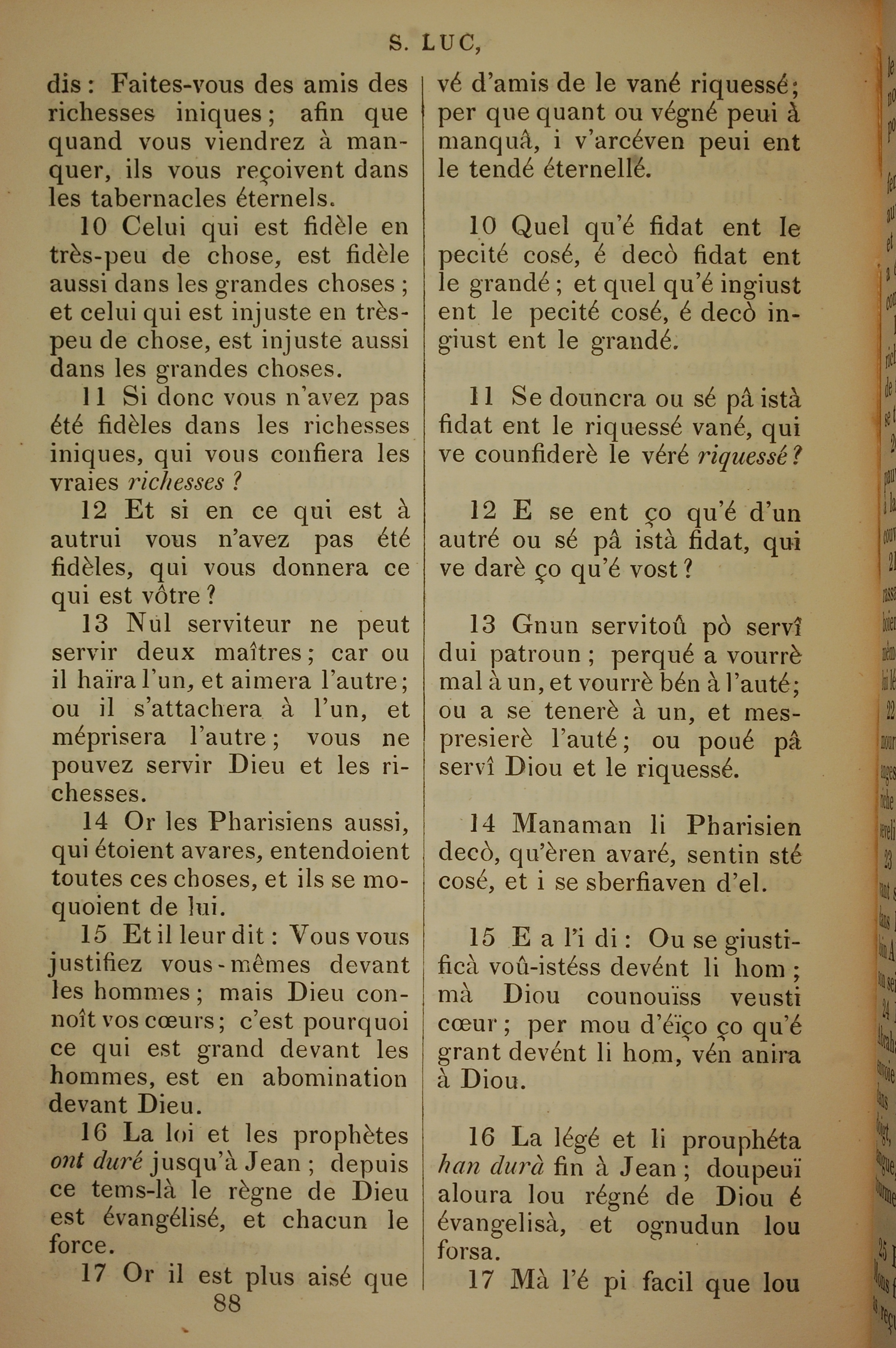 1832年法文聖經路加福音及約翰福音 路加福音 16 章 10 節到 16 章 17 節