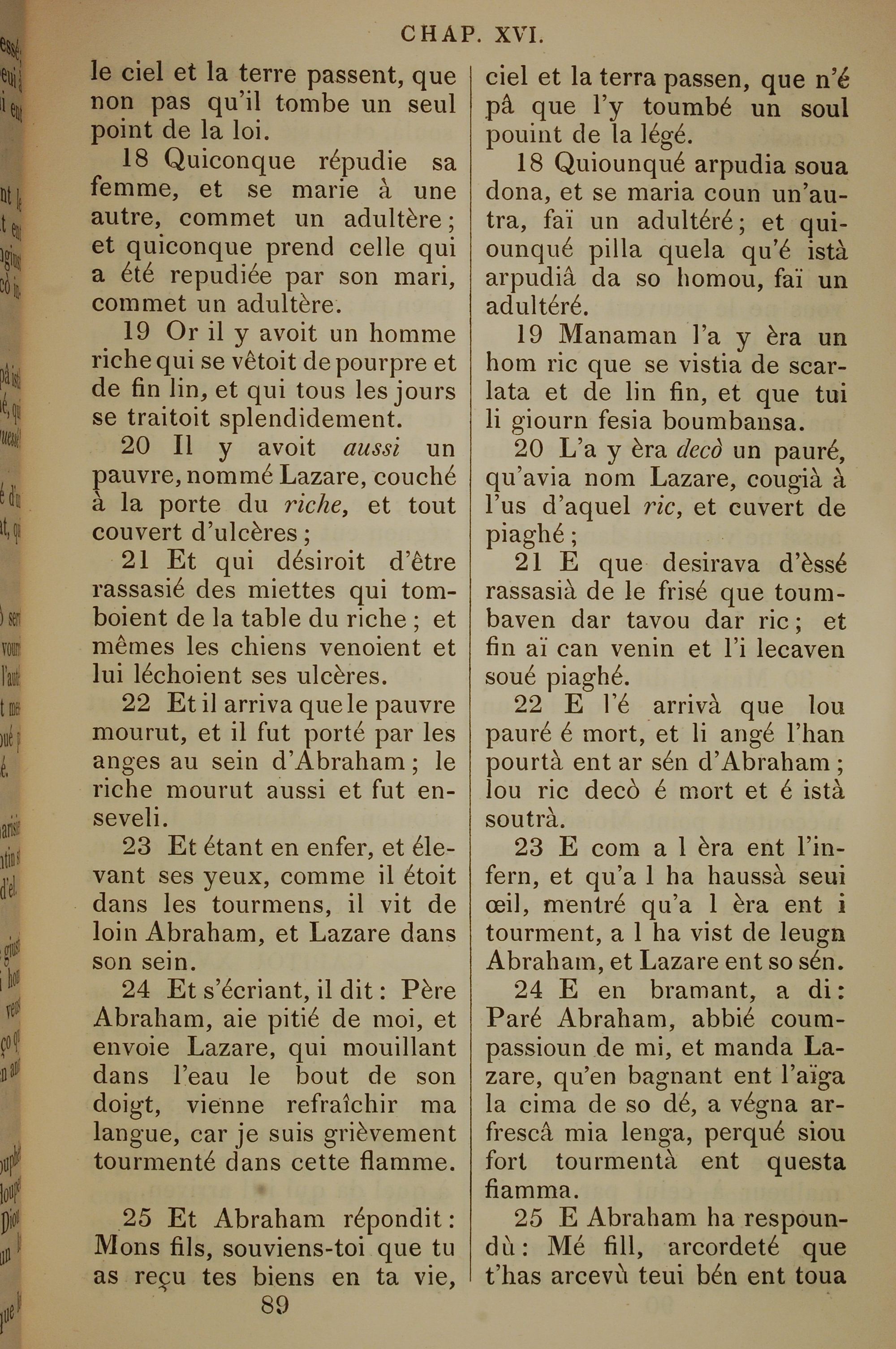 1832年法文聖經路加福音及約翰福音 路加福音 16 章 18 節到 16 章 25 節