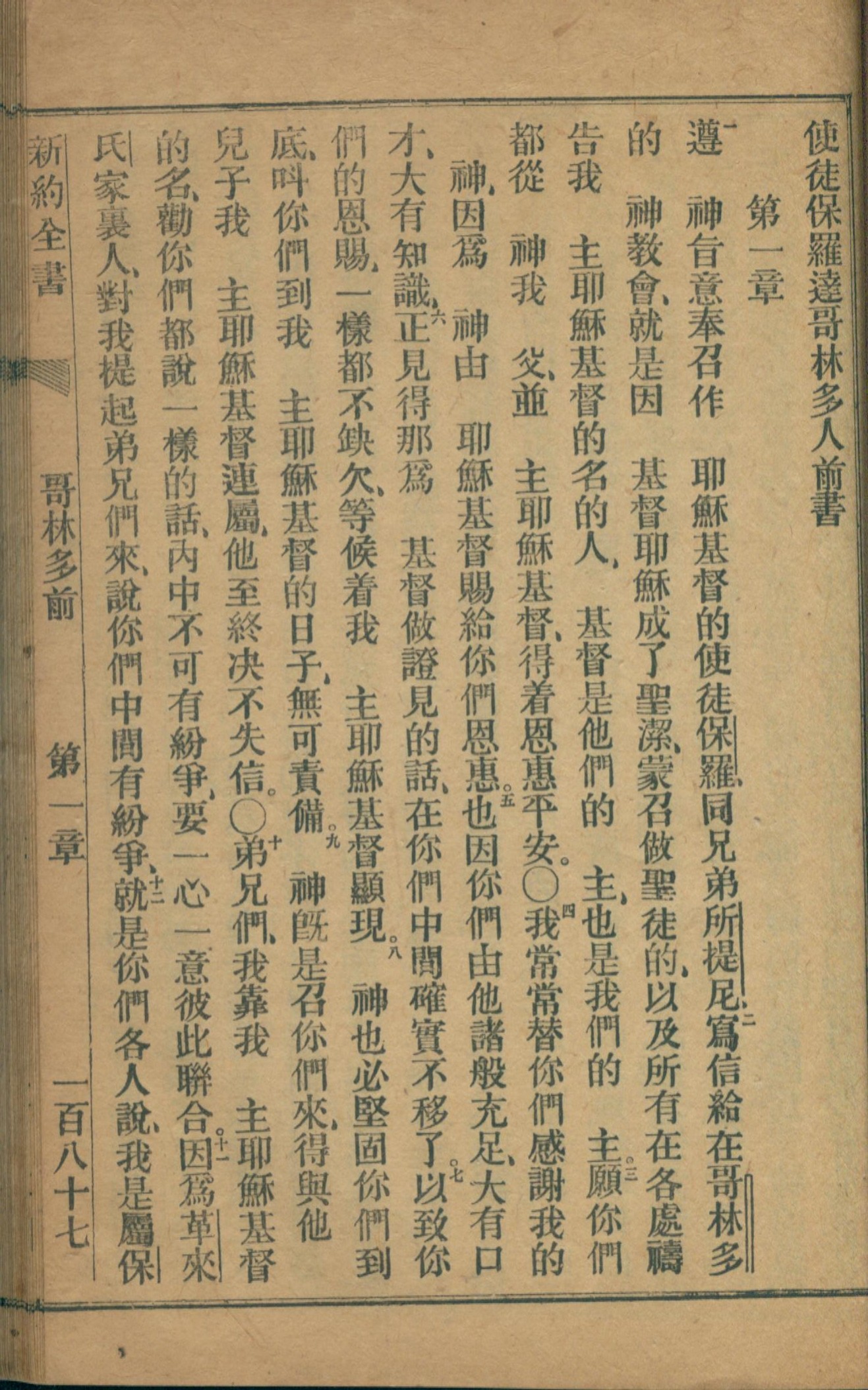 1872年官話新約全書 哥林多前書 1 章 1 節到 1 章 12 節