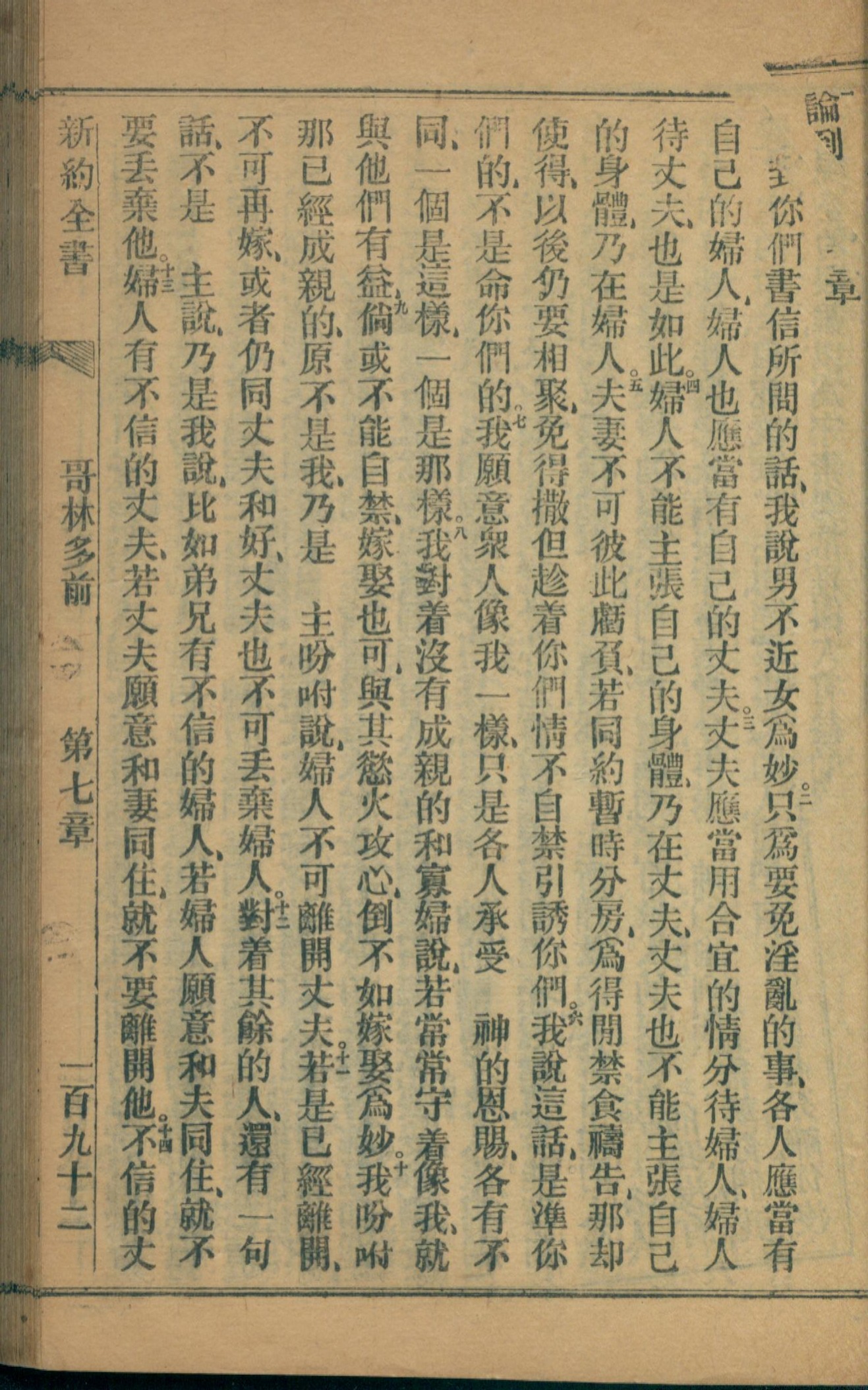 1872年官話新約全書 哥林多前書 7 章 1 節到 7 章 14 節