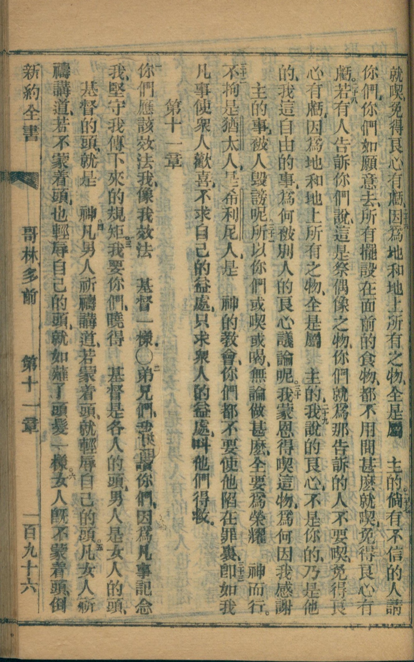 1872年官話新約全書 哥林多前書 10 章 26 節到 11 章 6 節