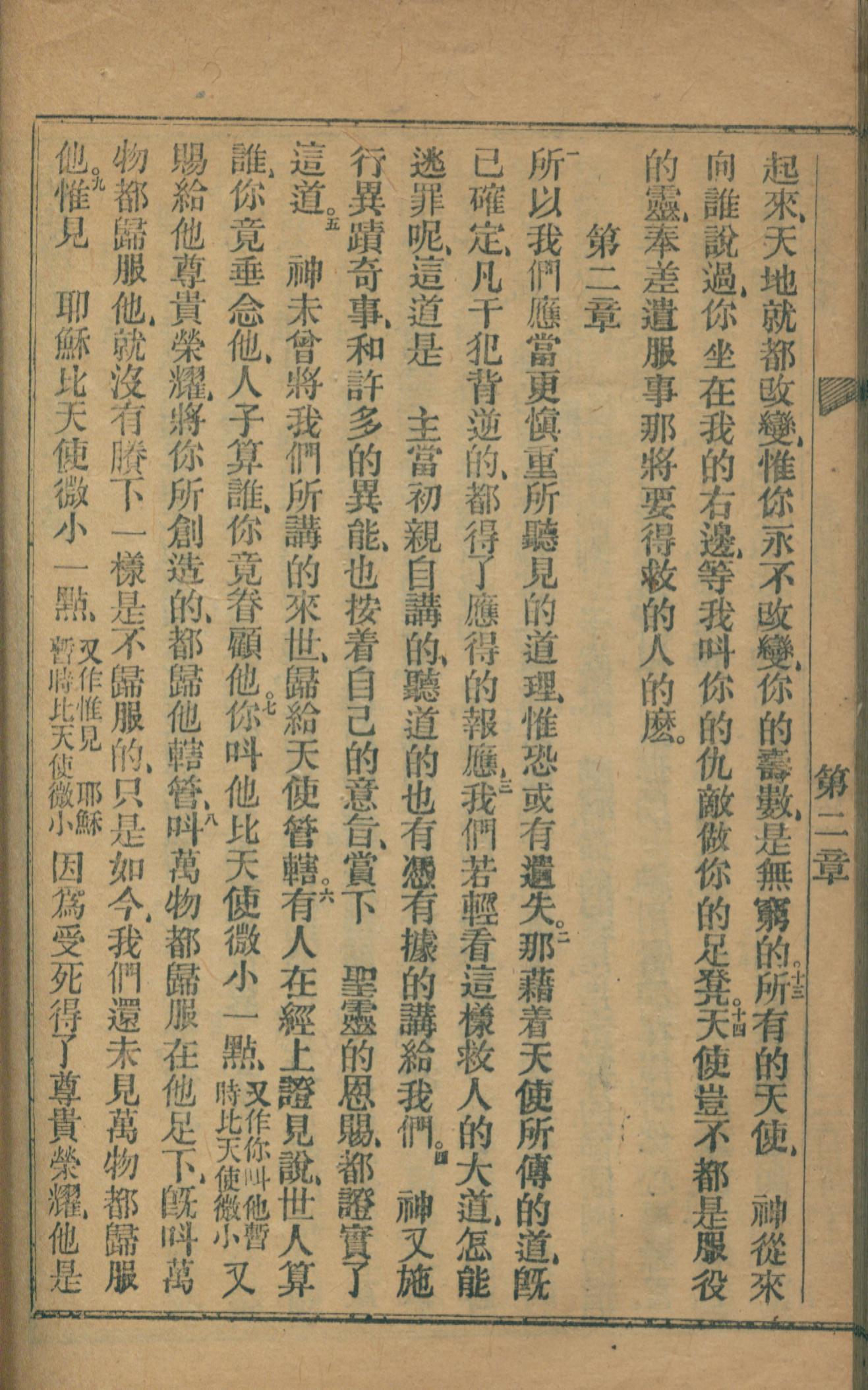 1872年官話新約全書 希伯來書 1 章 13 節到 2 章 9 節