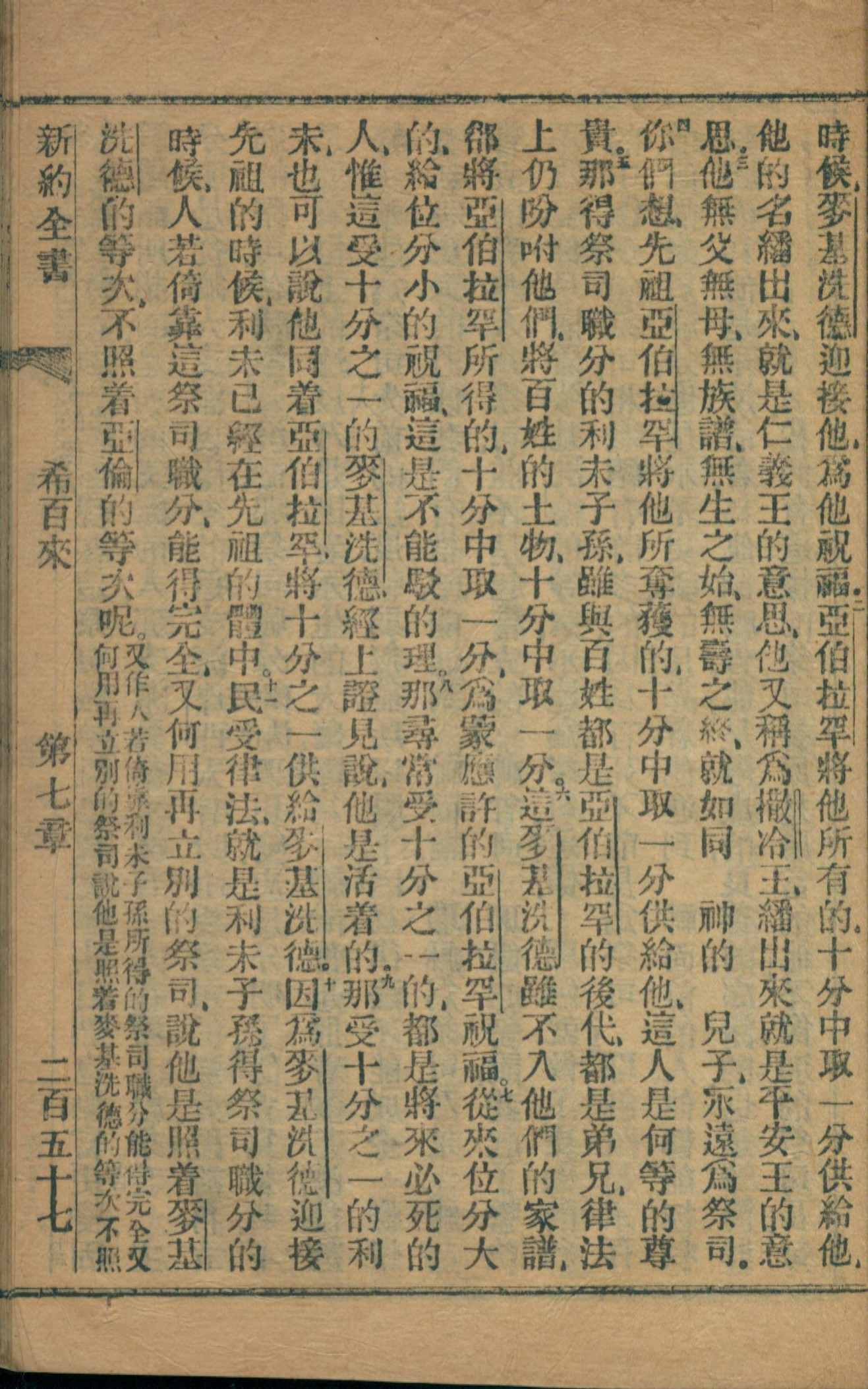 1872年官話新約全書 希伯來書 7 章 2 節到 7 章 11 節